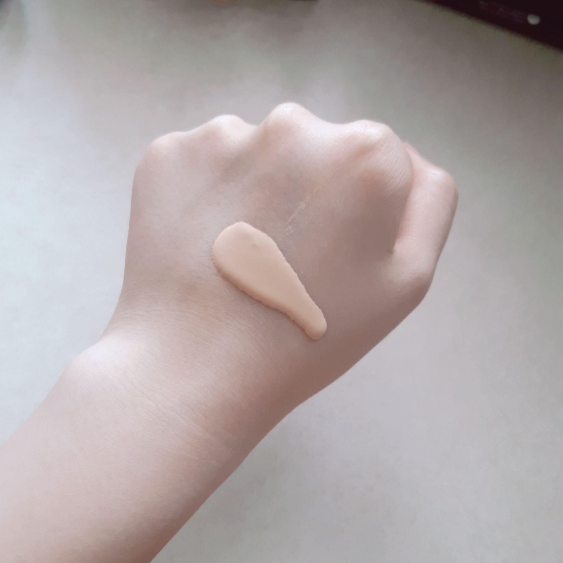 ↑零粉感粉底液在手上流動性表現,差點要流出我的手了XD