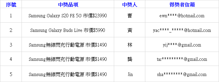 2. 2021/02/02(二) 將陸續寄出獎品。