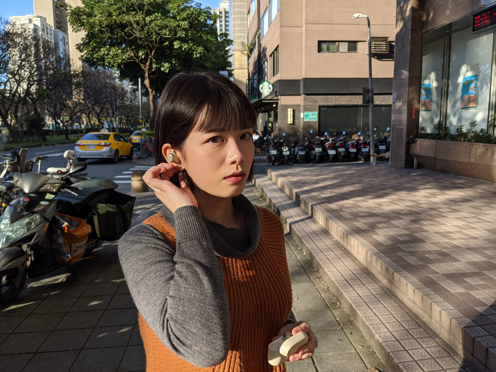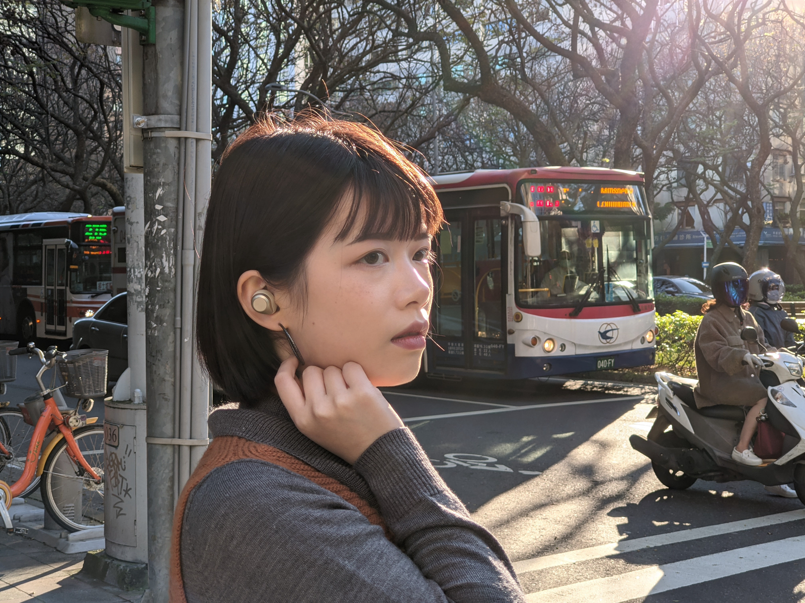 搭完車,走在人行道上,馬路邊呼嘯而過的車輛傳出了大量噪音,常讓人覺得心煩氣躁。此時將 ANC 主動降噪模式開啟,引擎和排氣聲頓時小了一半,甚至連風噪聲都減輕了不少。