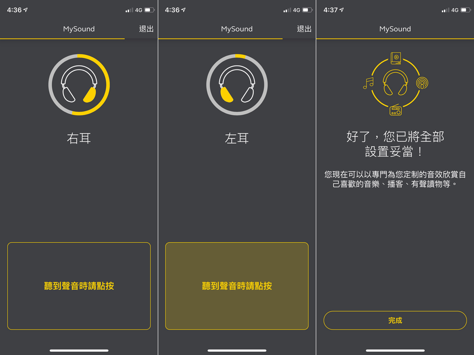 「MySound」功能,可透過 App 內提供的聽覺測試,在耳機上校準完成專業聲音優化和設定,讓音樂更符合個人的聽力特徵。