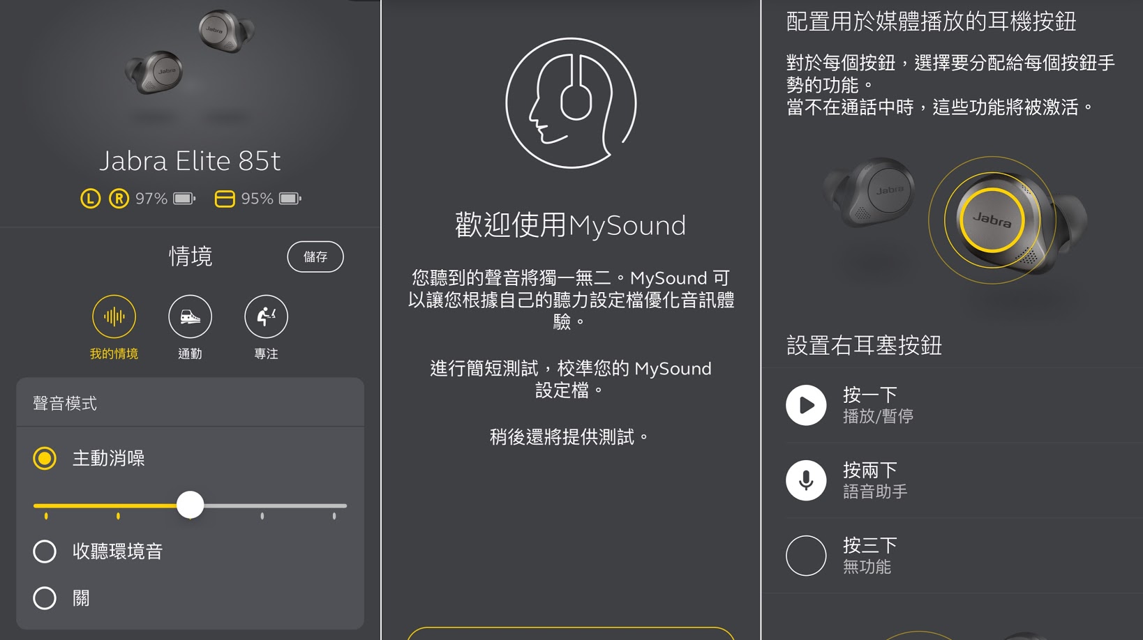 Sound+ App 內建相當多的設定功能,可協助 Jabra Elite 85t 發揮最大的戰鬥力。