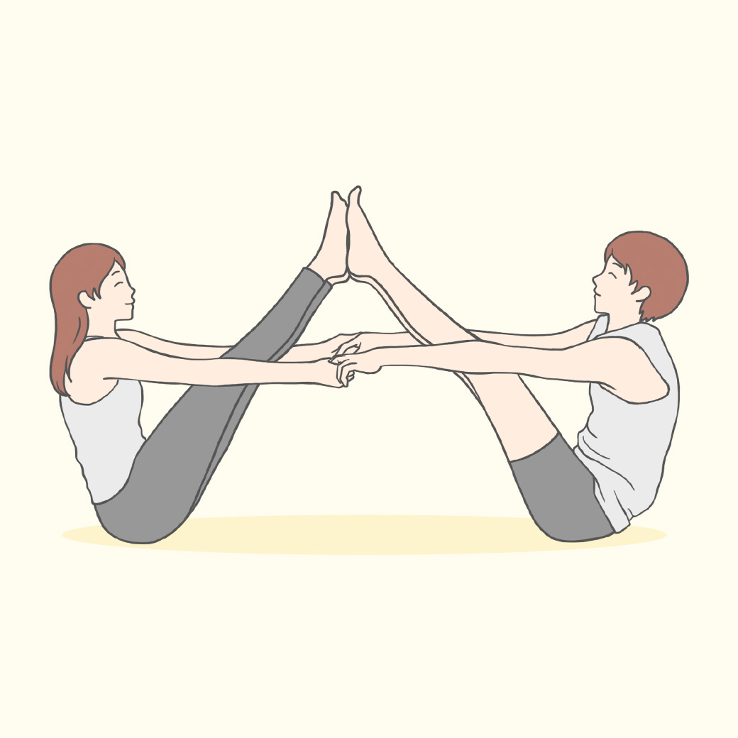 1. 首先面對面坐下,和對方手拉手、腳底併攏。