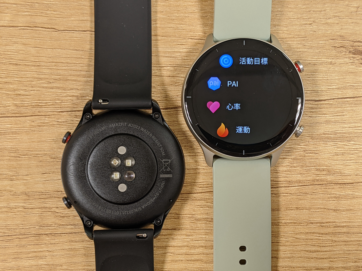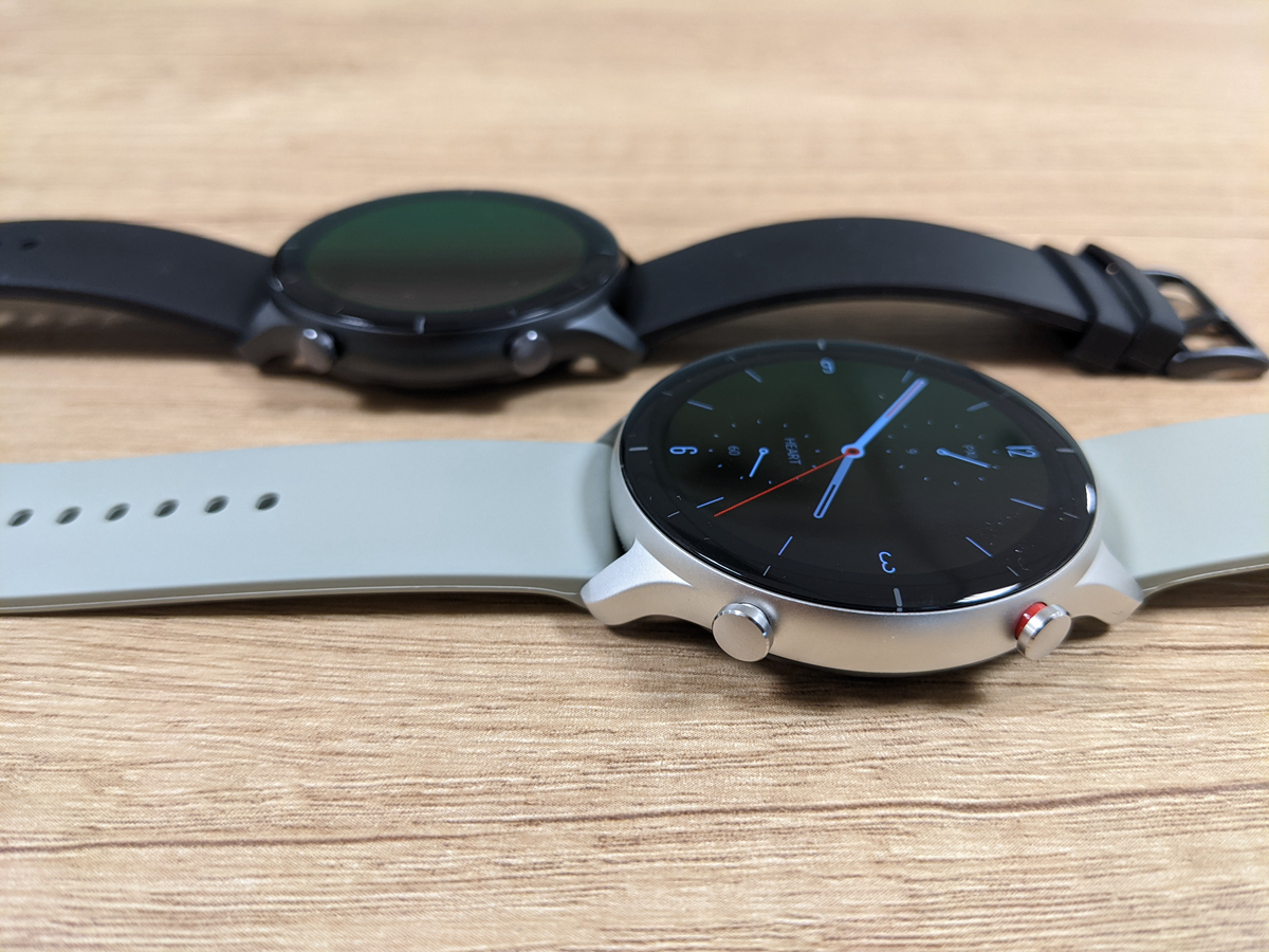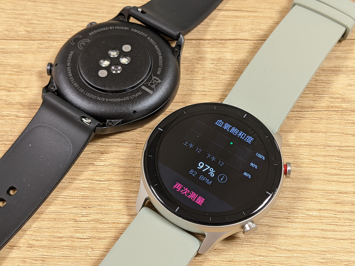 本次開箱的 GTS2e 魅力升級版和 GTR 2e 特仕升級版,有著輕薄無邊框設計語言,外觀採用 2.5D 曲面玻璃、玻璃真空鍍膜和鋁合金錶身。兩者主要差異在螢幕設計及電力, GTS2e為 1.65 吋方型螢幕、電池續航力 14 天,GTR 2e 則是 1.39 吋圓形螢幕、電池續航力 24 天。內在皆搭載華米自主研發的 BioTracker 2 PPG (支援血氧) 生物資料感測器,新一代 GPS + GLONASS 雙星定位,並加入溫度感應器。
