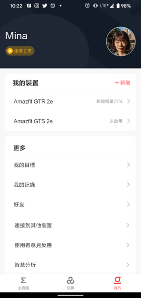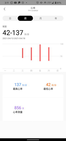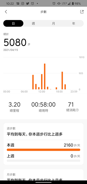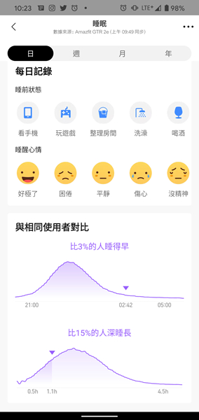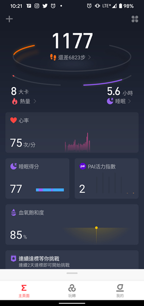 Zepp App 可顯示手錶所記錄的各式資訊,並以清晰的圖表顯示。