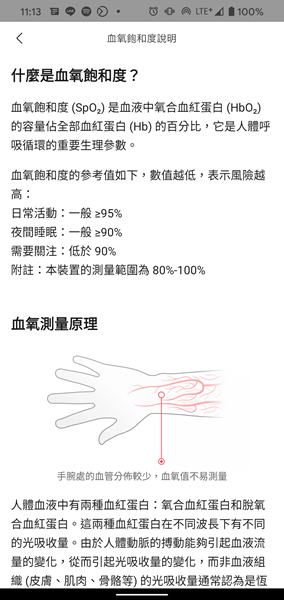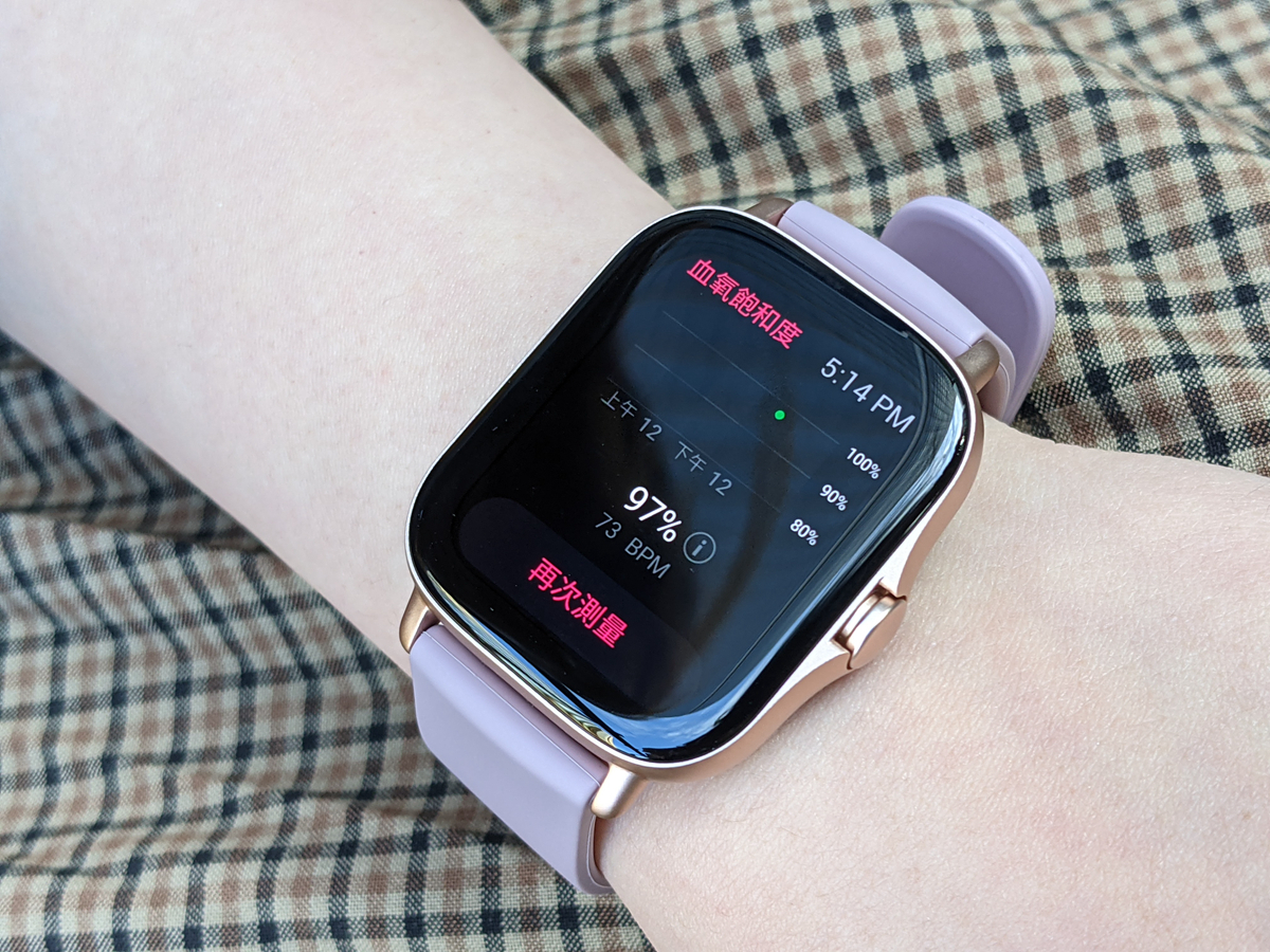 血氧飽和度在 90% 以上都屬正常值,如測得較低數值可確認是否手錶沒配戴好。