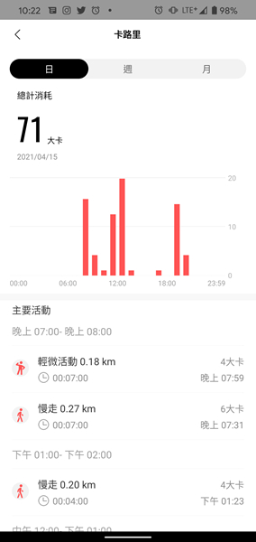 在 Zepp App 可查詢詳細的每日步數和卡路里消耗紀錄。