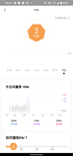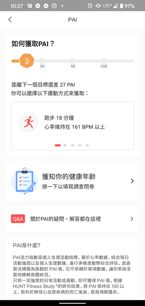 Zepp App 會告知如何獲得 PAI 值,讓使用者自行透過數值進行運動提升身體健康狀態,降低心血管疾病風險。