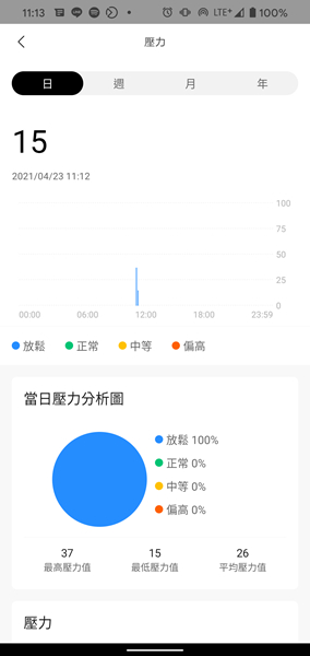 壓力程度監測,可檢查自己的壓力程度 (放鬆、正常、中等或高),以便知道何時要放鬆並減輕壓力。