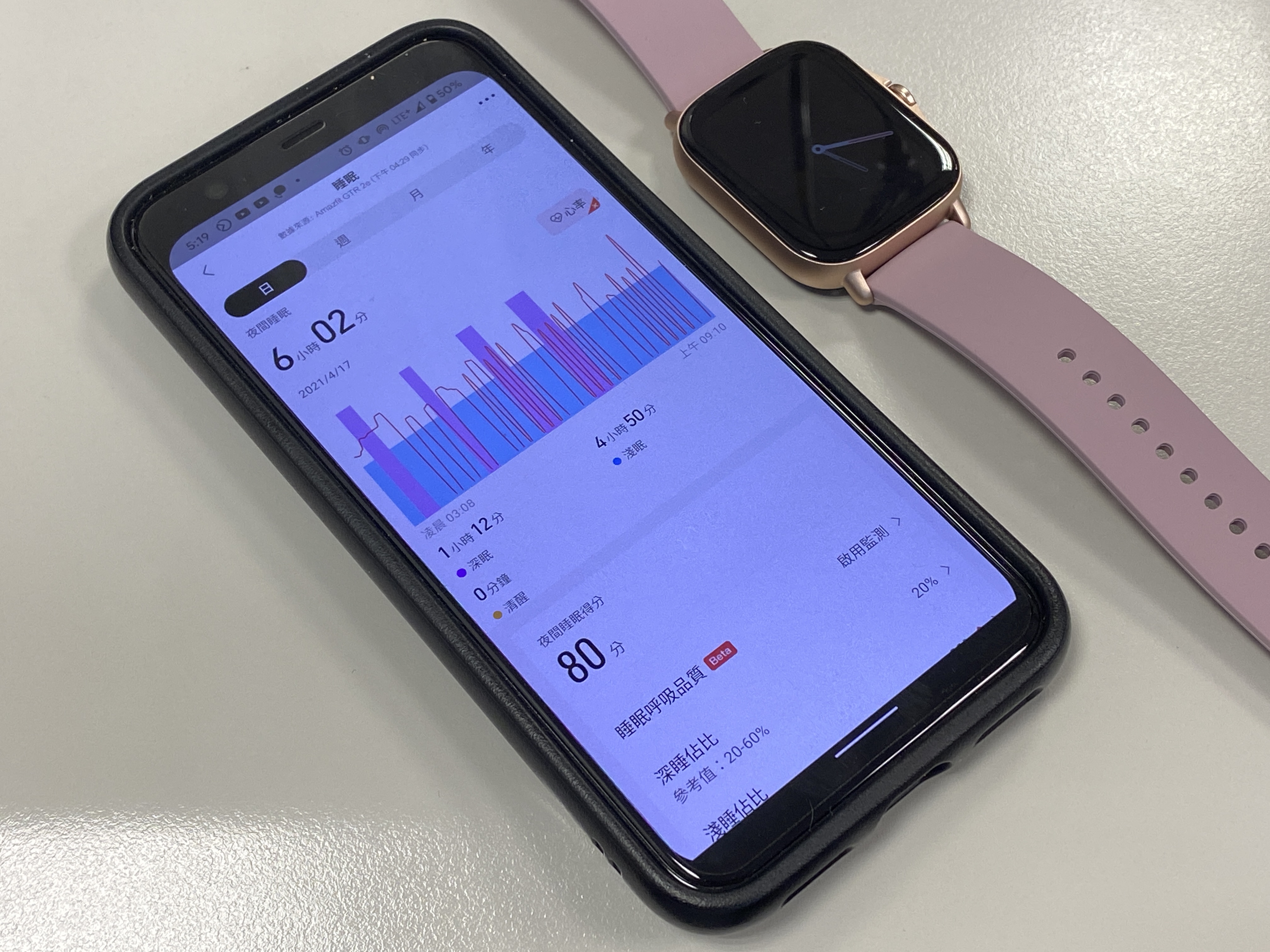 睡眠品質監測,可分析睡眠階段 (淺睡期、深睡期、REM9 期),監測睡眠呼吸狀況,並提供夜間睡眠品質分析和改善建議。手錶可以識別超過 20 分鐘的日間小睡,記錄更完整的睡眠資訊。