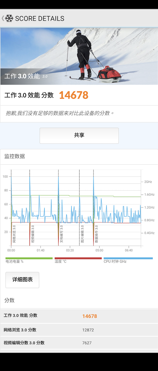 PCMark for Android 工作 3.0 效能分數。在 UL 官方榜單中,Xperia 1 III 可以站上前 10 名的好成績。