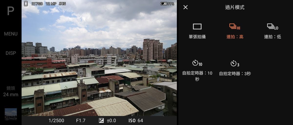 如同 Sony 相機邏輯,進入過片模式中選擇「連拍:高」,即可開啟 20FPS 連拍。