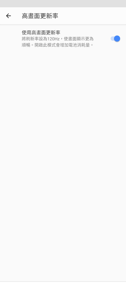各位一定要試試這功能!開啟「高畫面更新率」,螢幕就會以 120Hz 螢幕更新率顯示,滑手機的過程就會帶來極緻流暢地划動感,不會有出現畫素滑動的殘影現象。