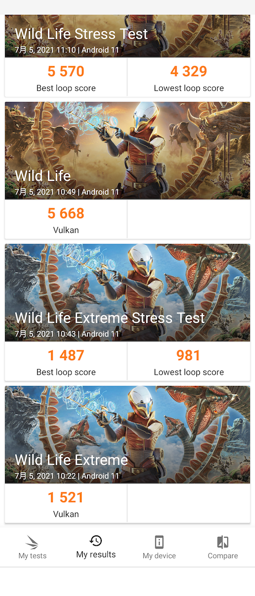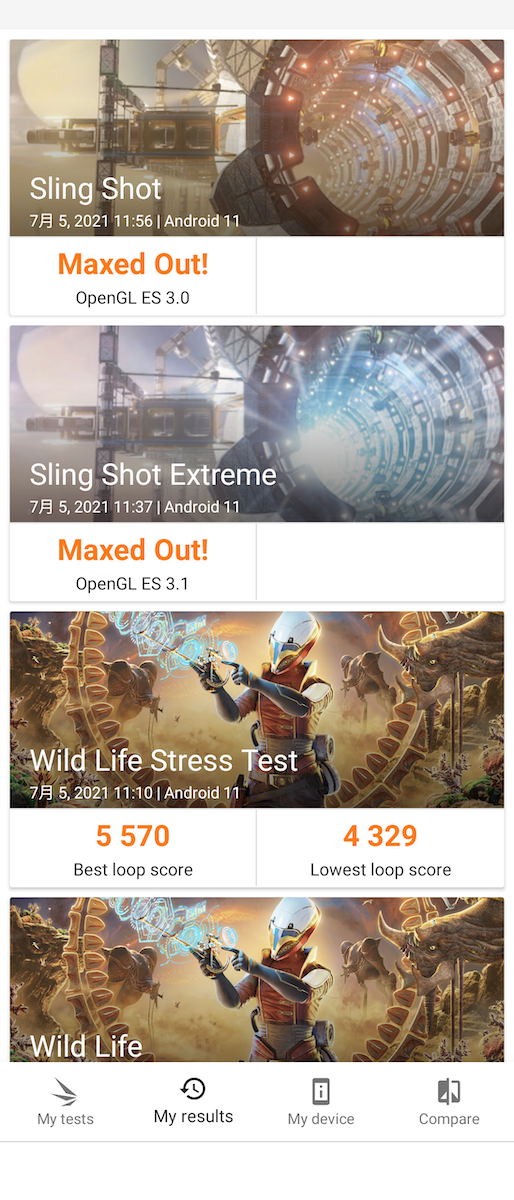 3DMark for Android 各項分數如圖。Xperia 1 III 多數成績在 UL 官方榜單中都能處於前 10 名的成績,甚至在部分項目出現 Maxed Out! 破表成績。