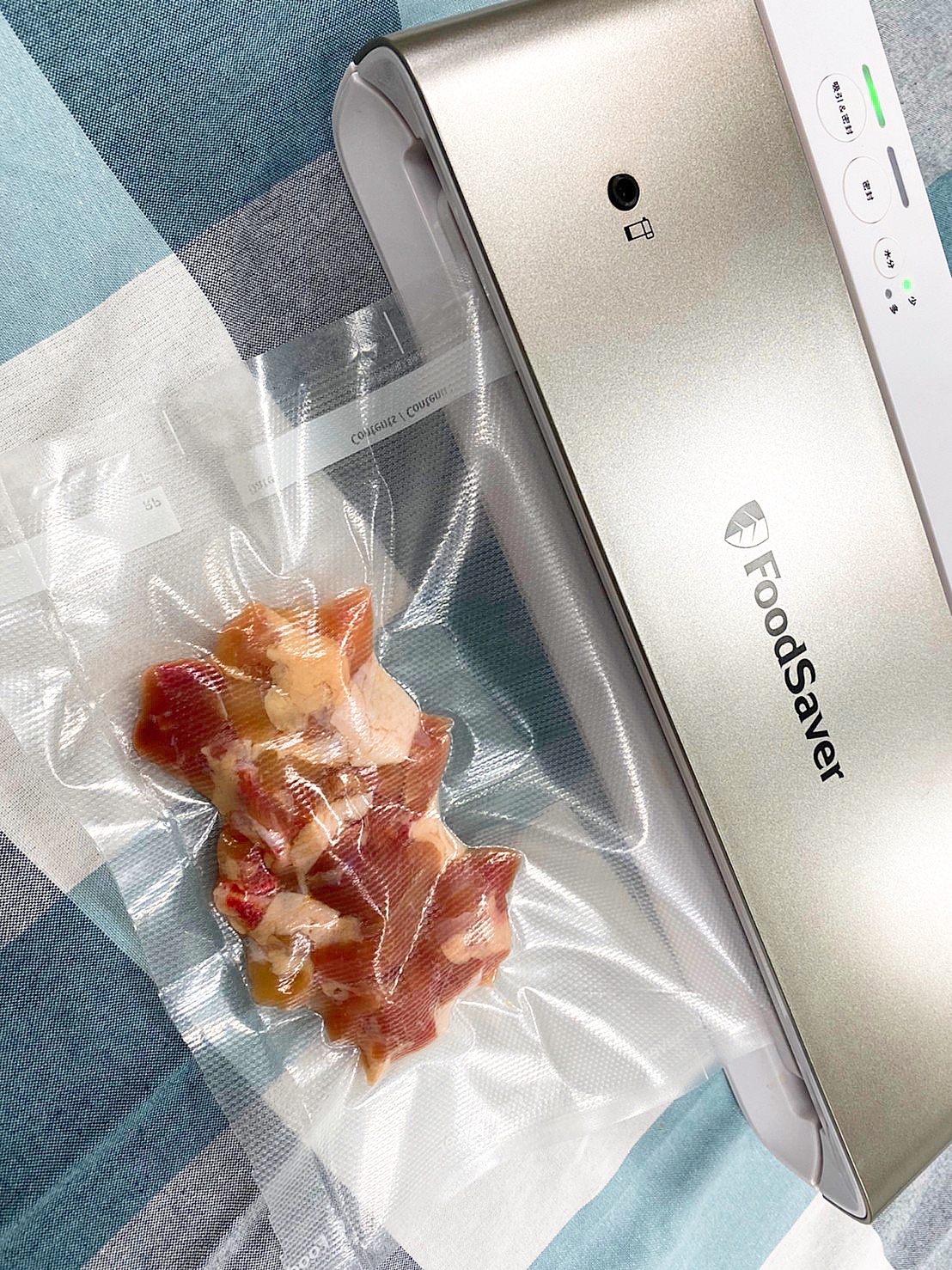 ↑ 小編前一晚就先使用真空機準備好雞肉啦,看看這雞肉的色澤是不是很新鮮!