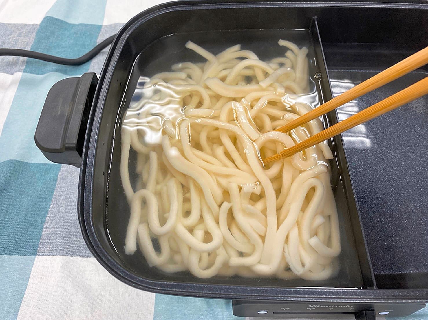 烏龍麵水煮1分鐘,撈起備用。