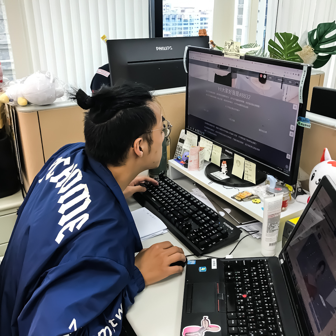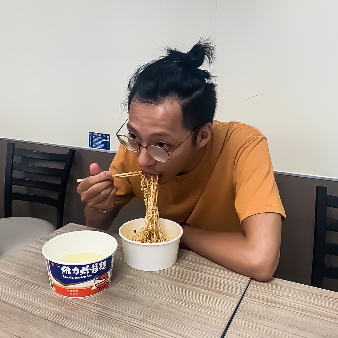 輕鬆跟同事講到話囉!雖然她臉好像有點不開心呢!