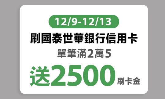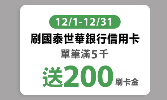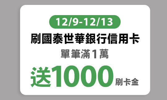 *「Double Day 5%加碼」回饋:限12/9 16:00至12/12 23:59 完成活動登錄,且於12/12刷卡消費,12/12回饋上限1,000點小樹點(信用卡)。