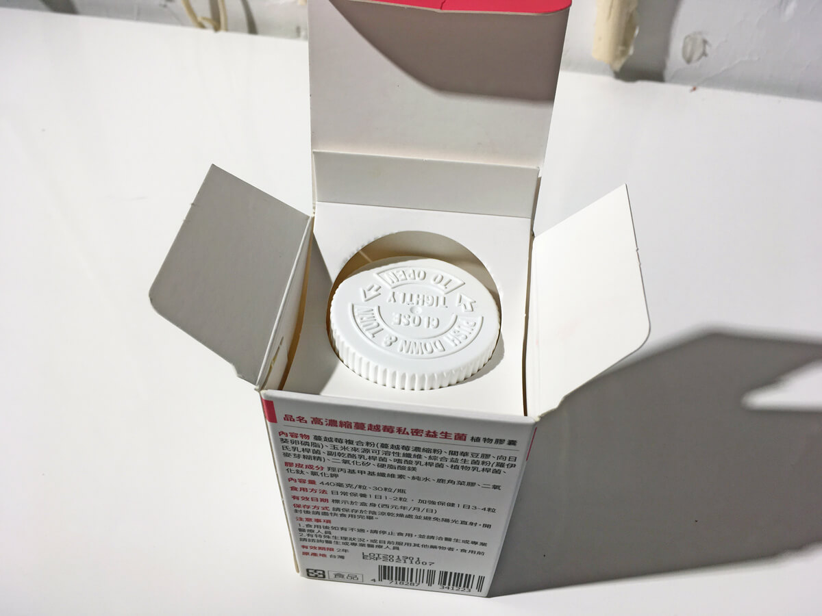 悠活原力的保健品在包裝設計上也很用心,不只有在外包裝設計紙夾防撞。也在瓶內放入塑膠紙,避免在運送途中發生劇烈的撞擊影響到膠囊質量。而為了確保商品是最新鮮的狀態給消費者,也在瓶內放入防潮乾燥劑。