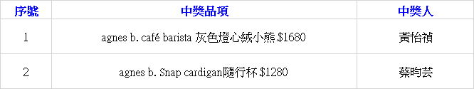 【10/29~11/05 #按讚留言抽 1. agnes b. café barista 灰色燈心絨小熊 市價$1680(抽1名)/2. agnes b. Snap cardigan隨行杯 市價$1280(抽1名)】