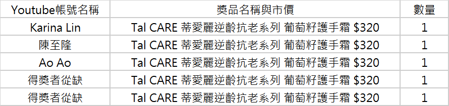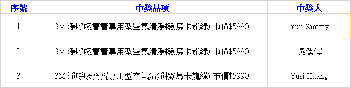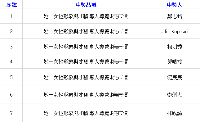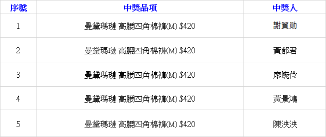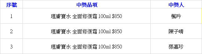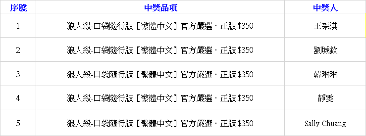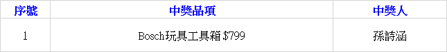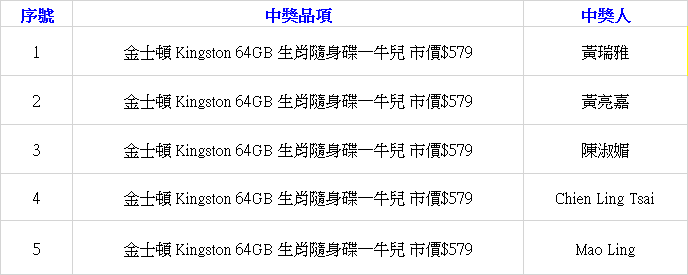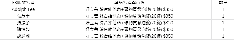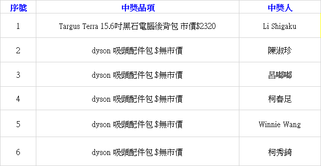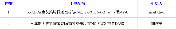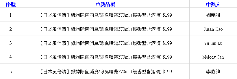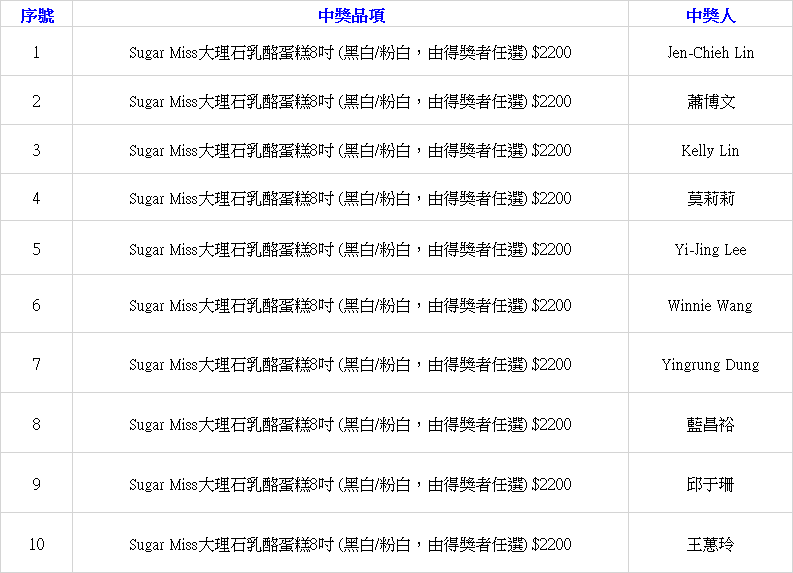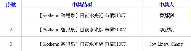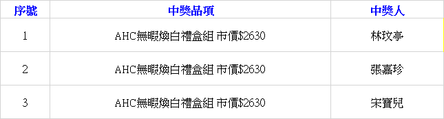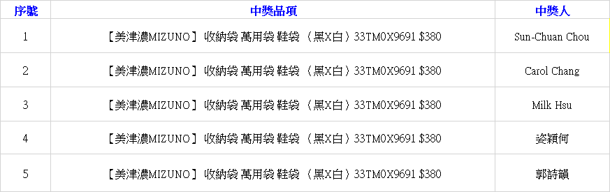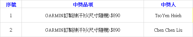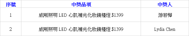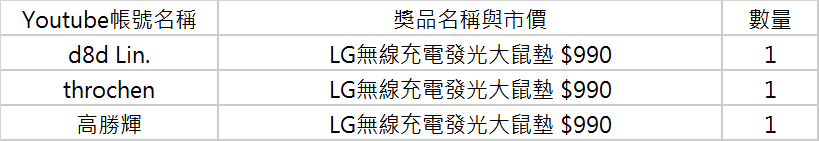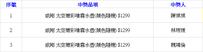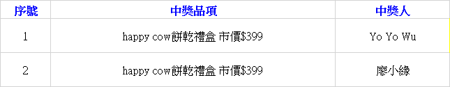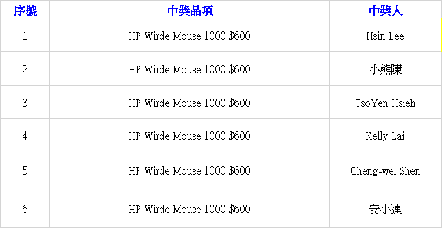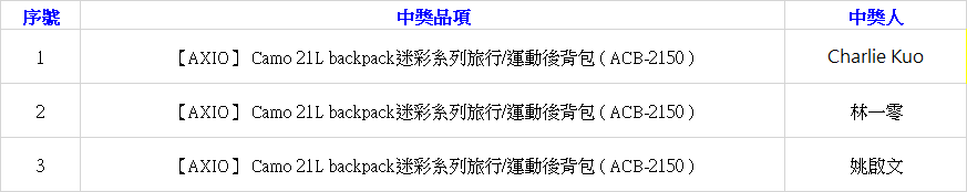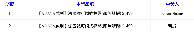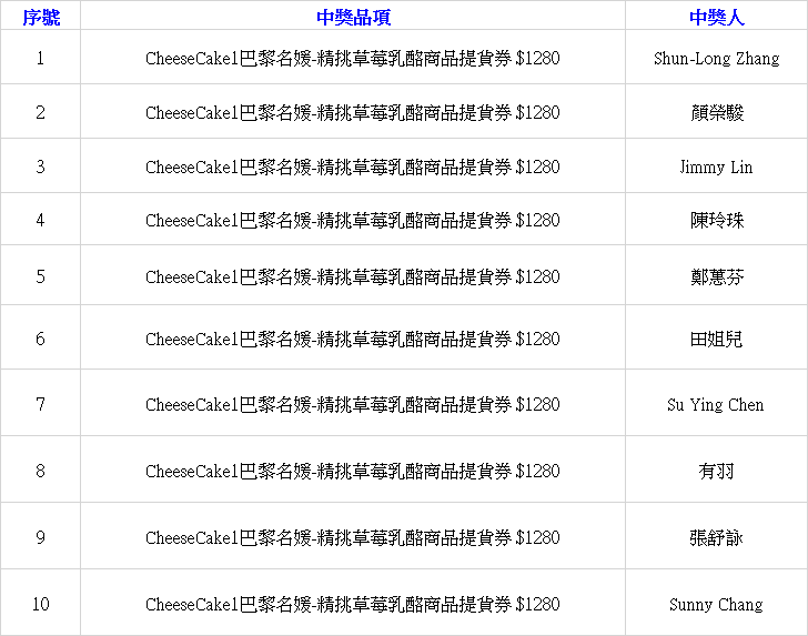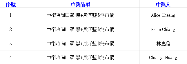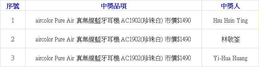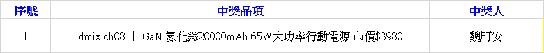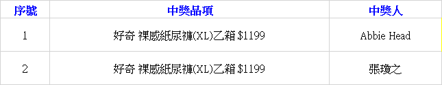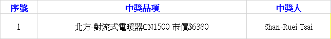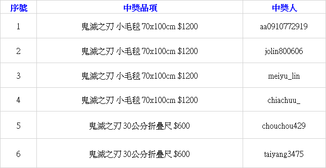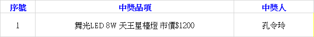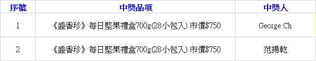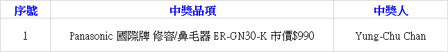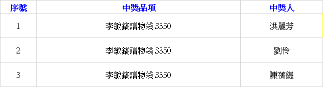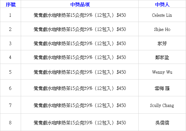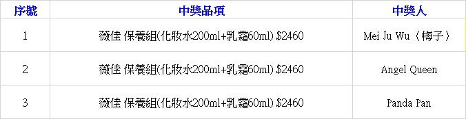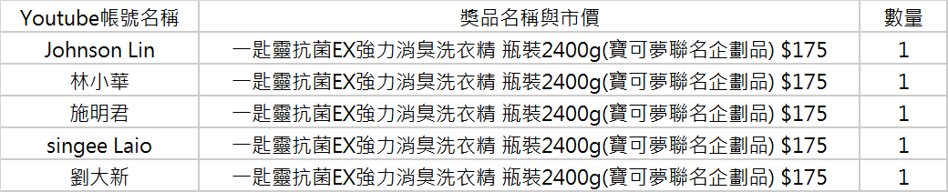 FB帳號名稱 | 獎品名稱與市價 | 數量 |