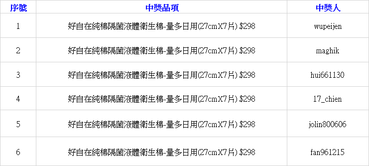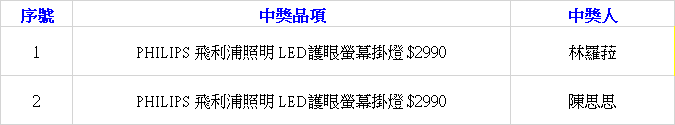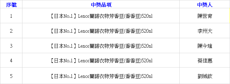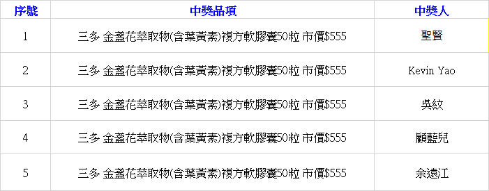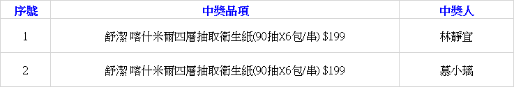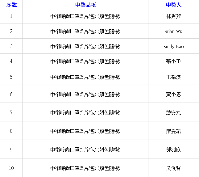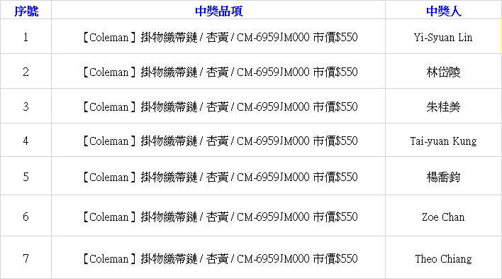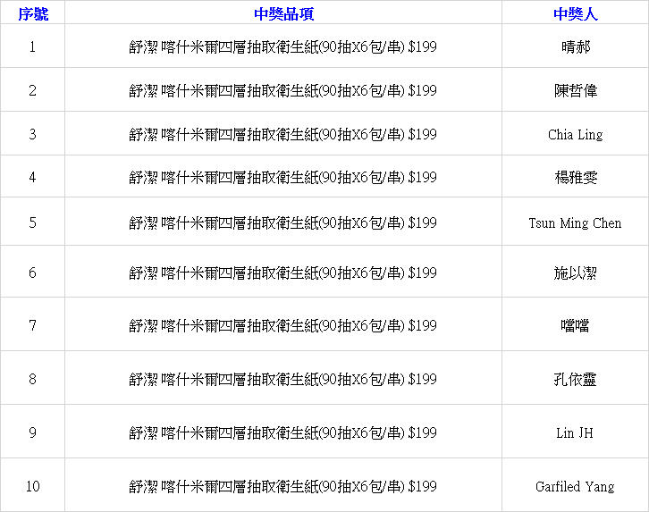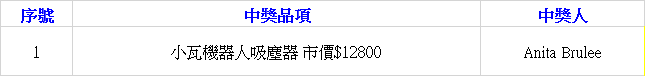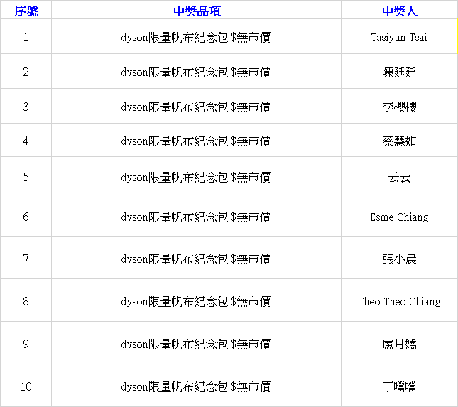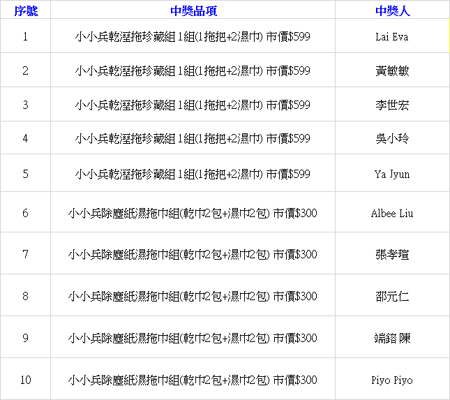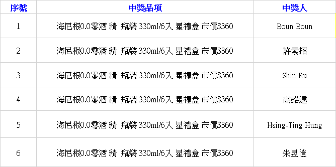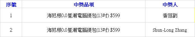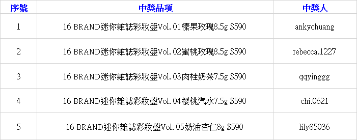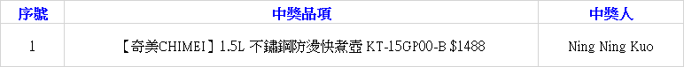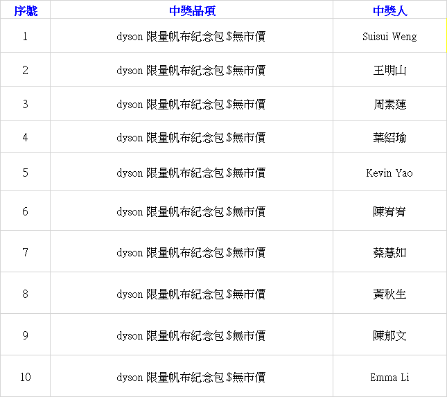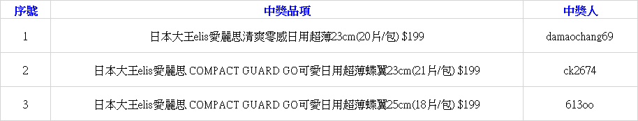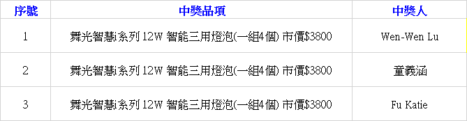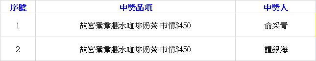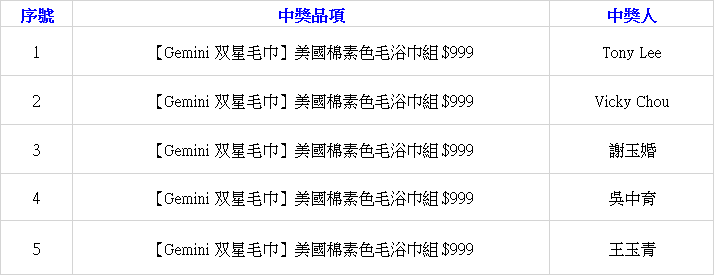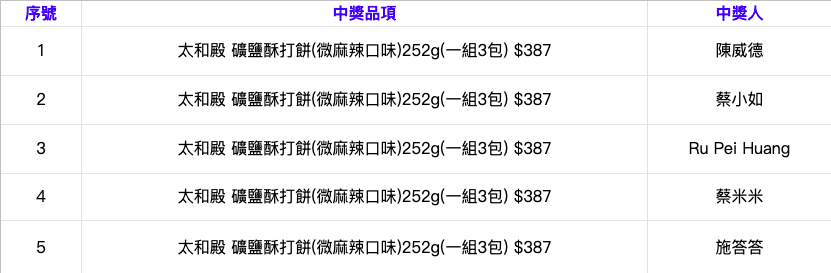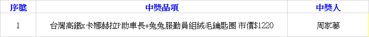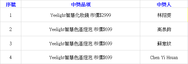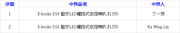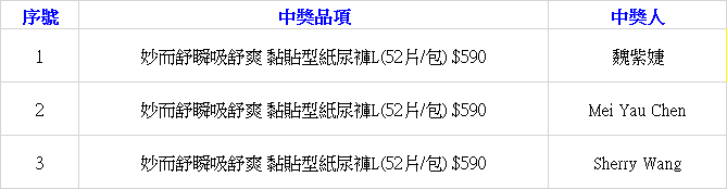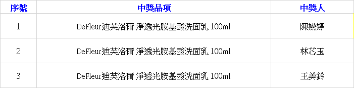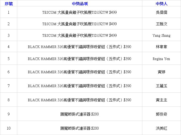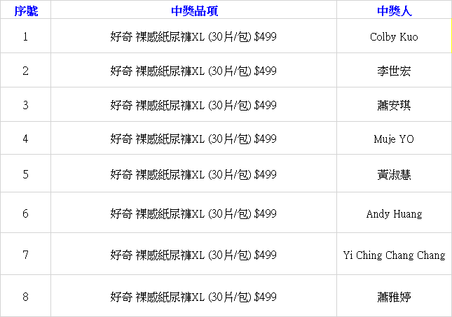FB帳號名稱 | 獎品名稱與市價 | 數量 |