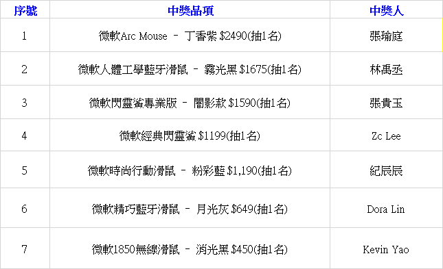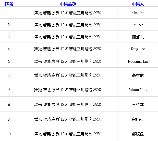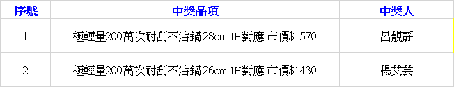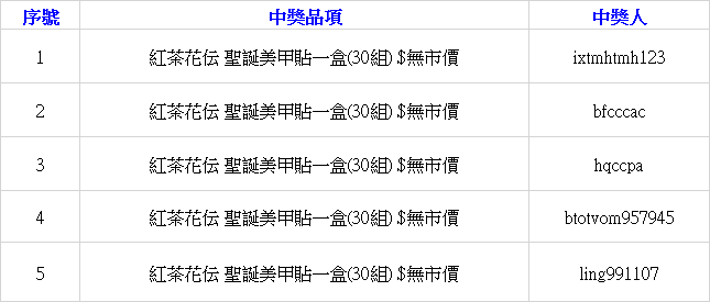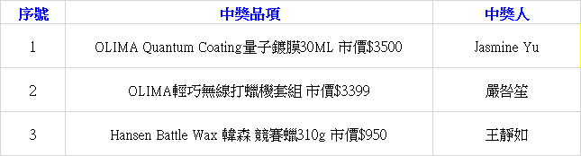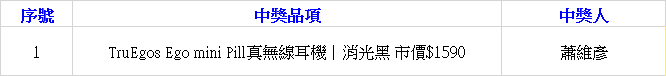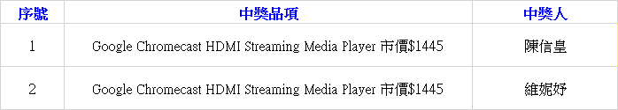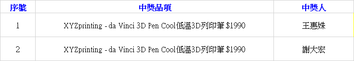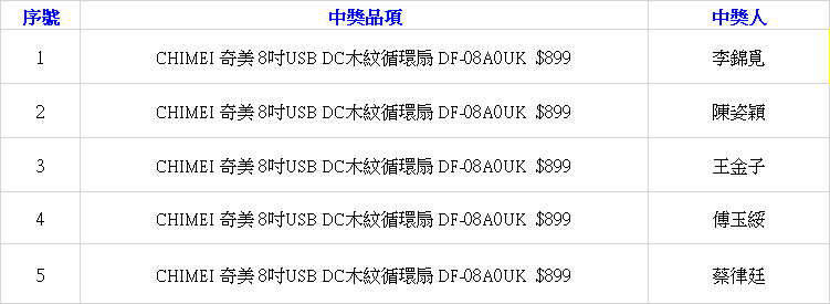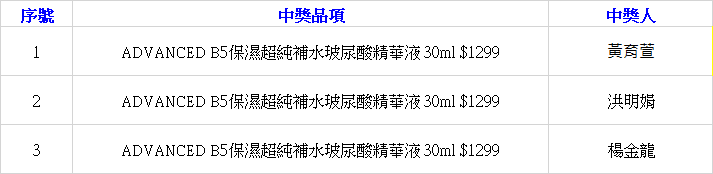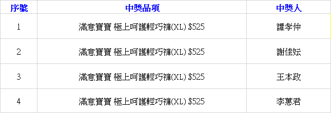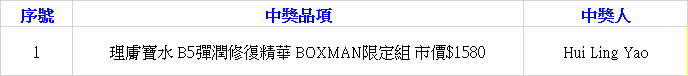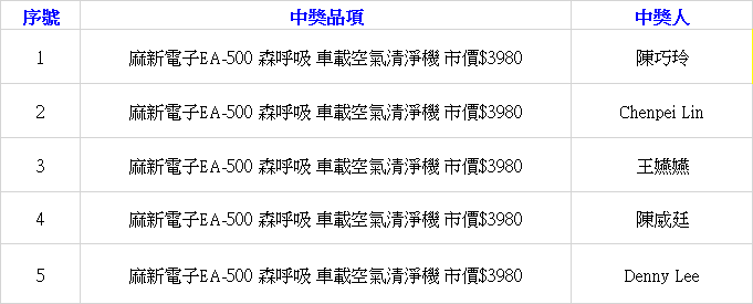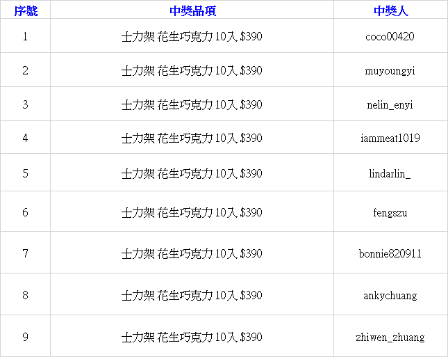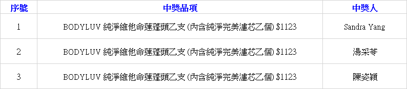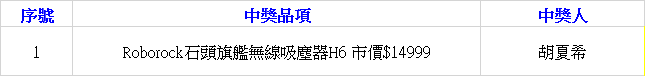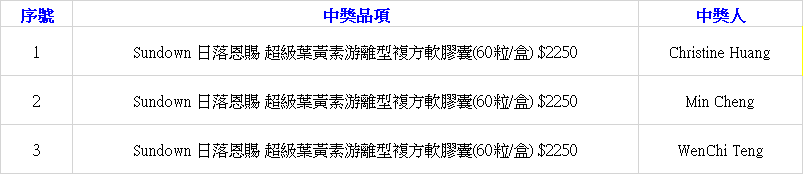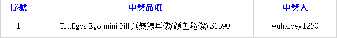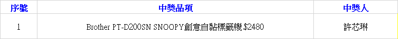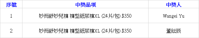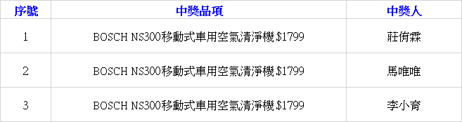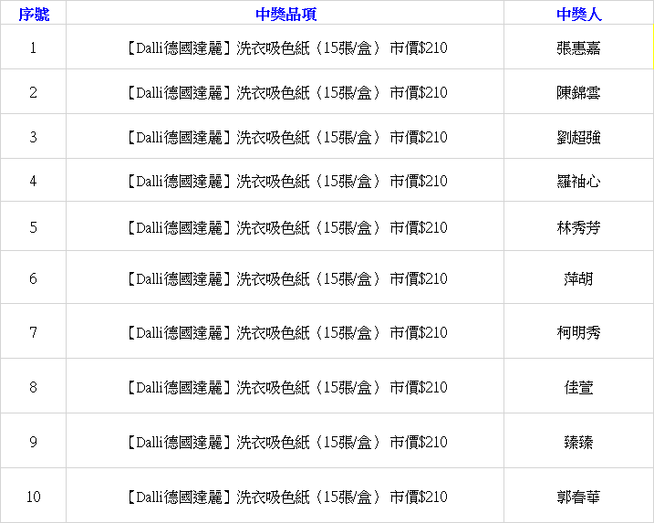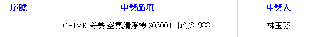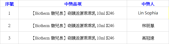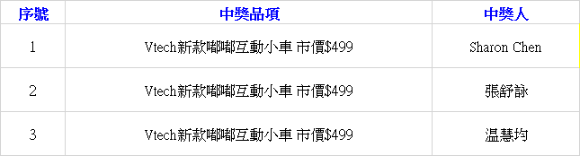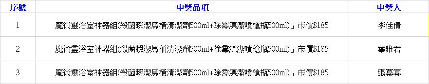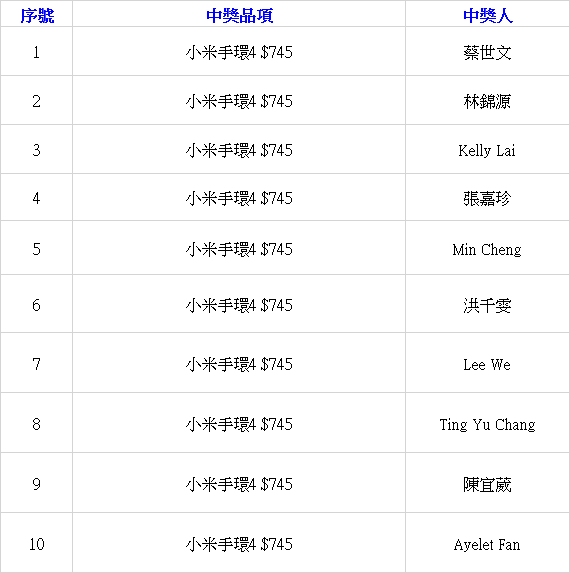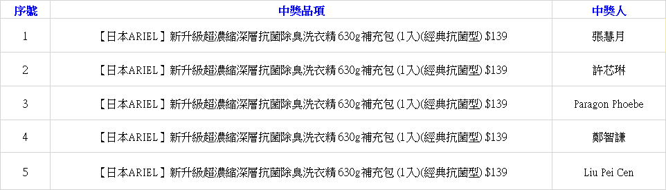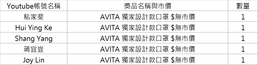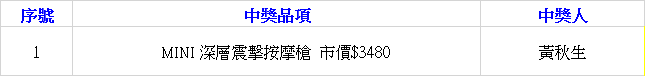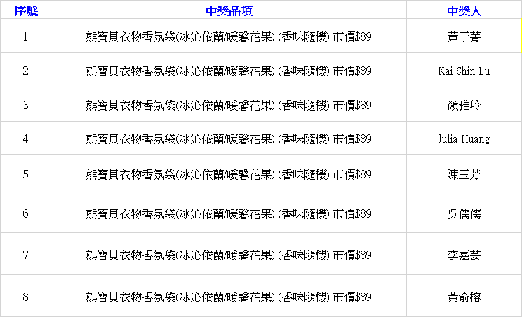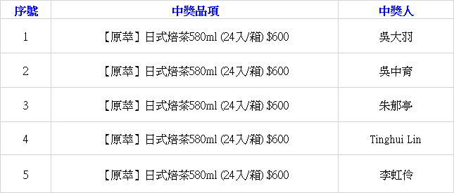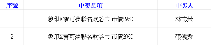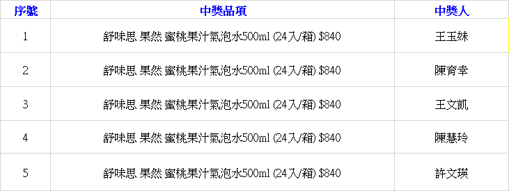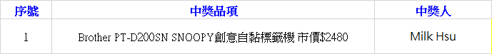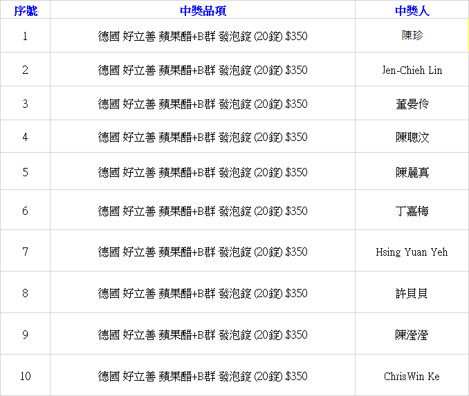 FB帳號名稱 | 獎品名稱與市價 | 數量 |