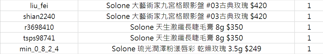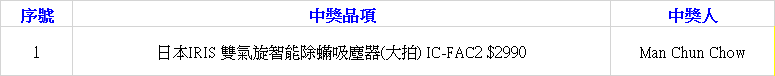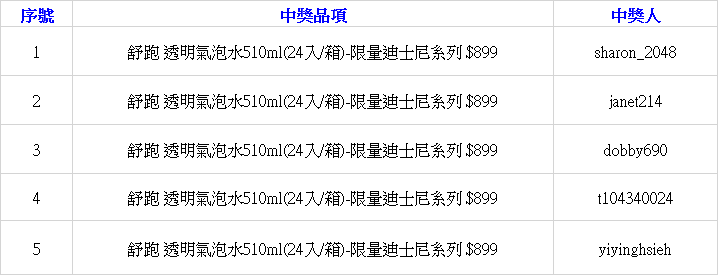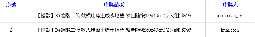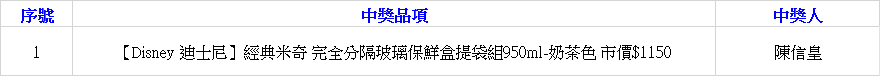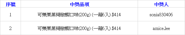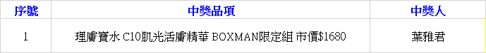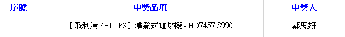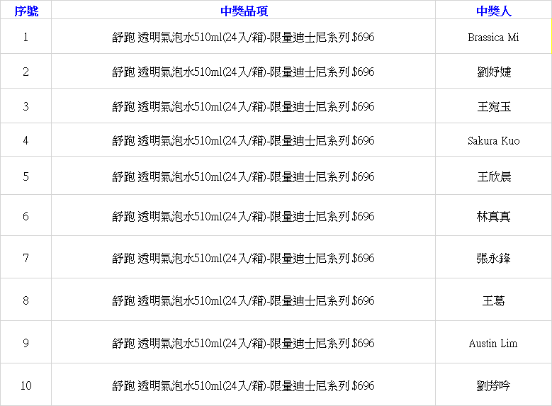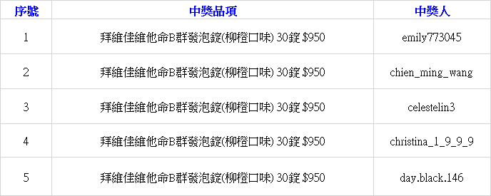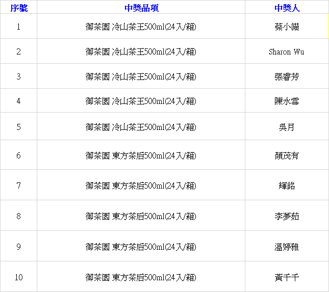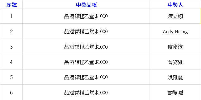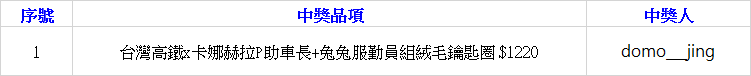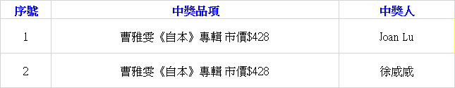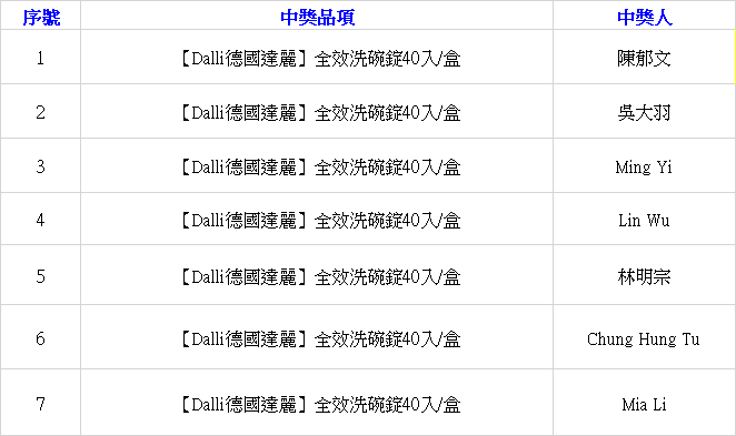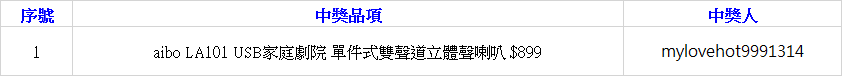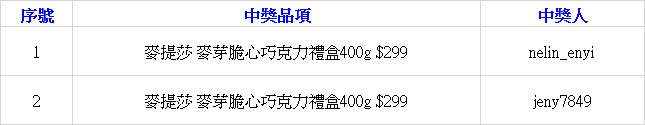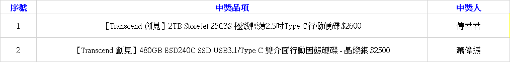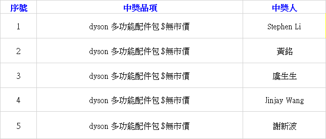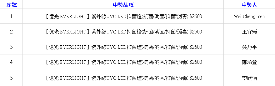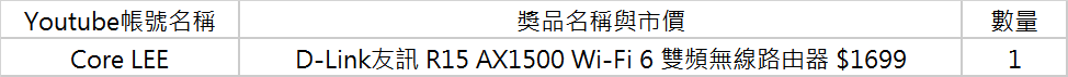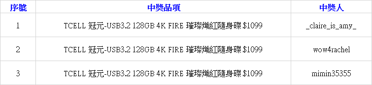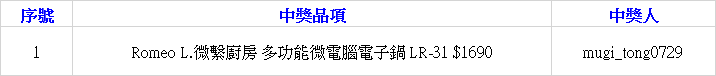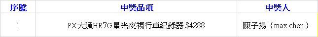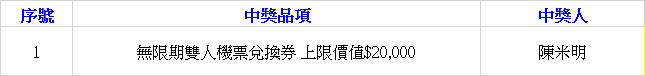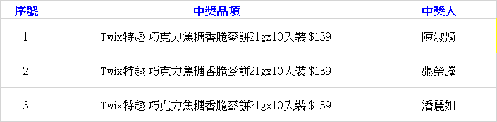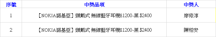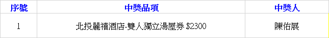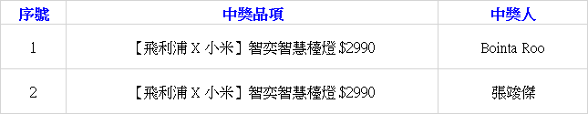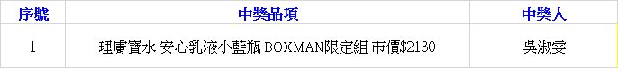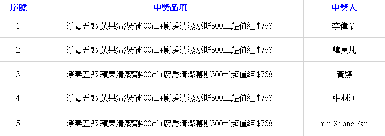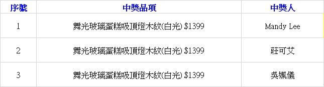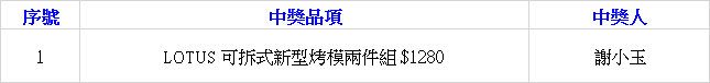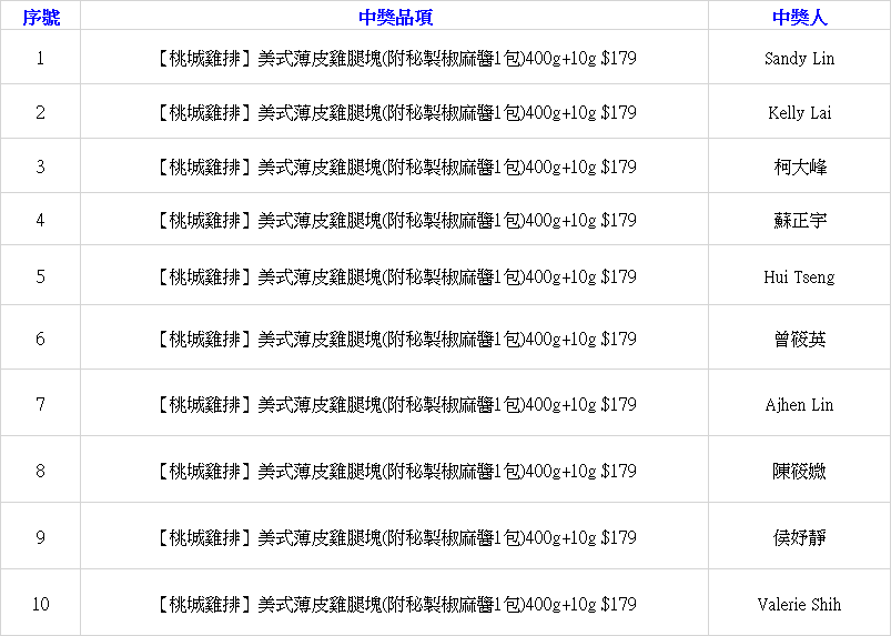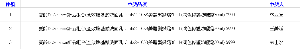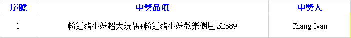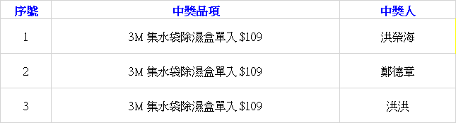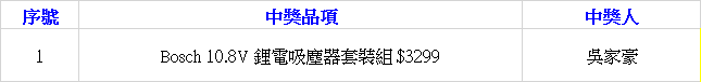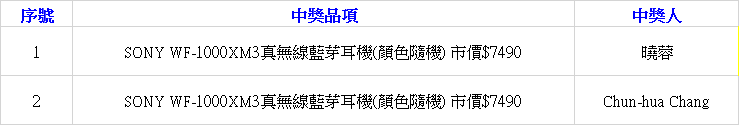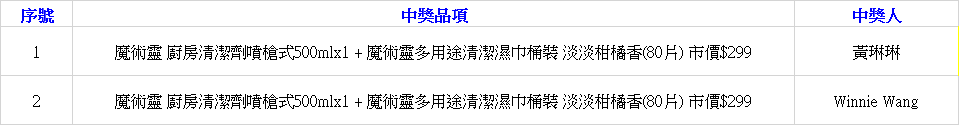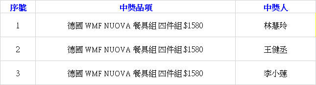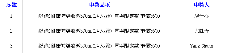 FB帳號名稱 | 獎品名稱與市價 | 數量 |