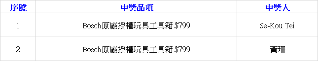 【10/31~11/06 #按讚留言抽 Bosch原廠授權玩具工具箱 市價$799】(抽2名)