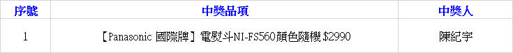 【11/02~11/09 #按讚留言抽 【Panasonic 國際牌】電熨斗NI-FS560顏色隨機 市價$2990】(抽1名)