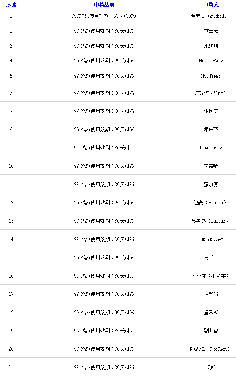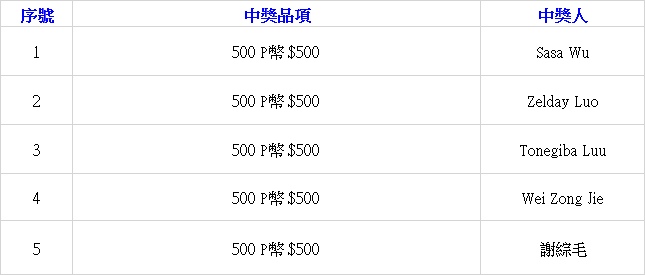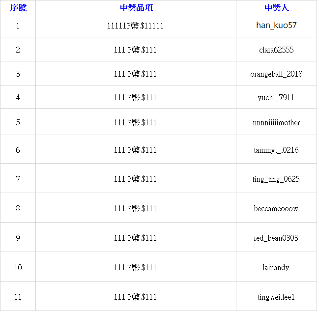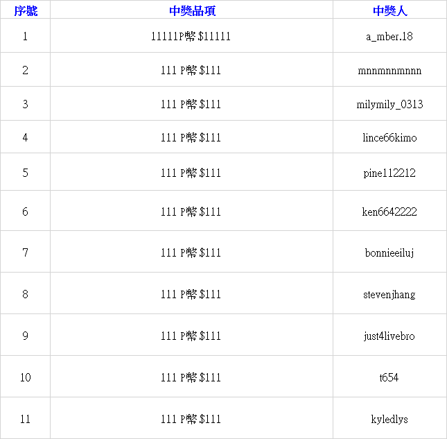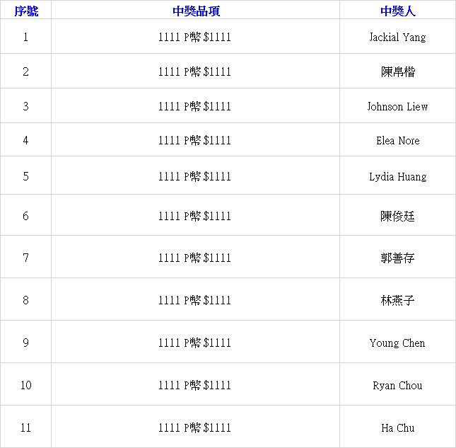 【10/26~11/23 #按讚留言抽 1111 P幣 市價$1111】(抽11名)