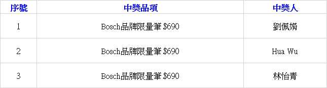 【11/17 #直播留言抽 Bosch品牌限量筆 市價$690】(抽3名)