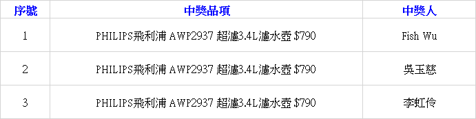 【10/30~11/15 #按讚留言抽 PHILIPS飛利浦 AWP2937 超濾3.4L濾水壺 市價$790】(抽3名)