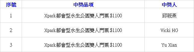 【11/03~11/16 #按讚留言抽 Xpark都會型水生公園雙人門票 市價$1100】(抽3名)