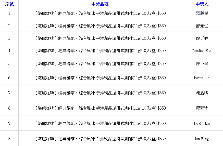 【11/08~11/15 #按讚留言抽 【湛盧咖啡】經典獨家.綜合風味 手沖精品濾掛式咖啡(11g*10入/盒) 市價$350】(抽10名)