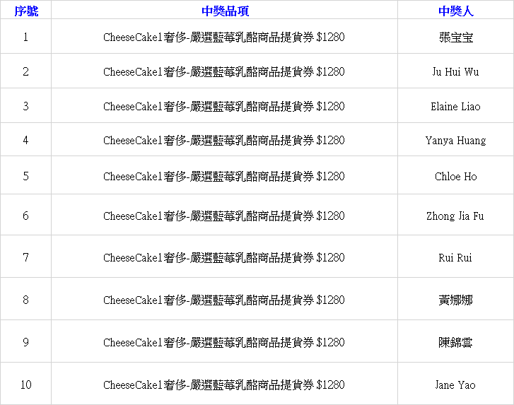 【11/20~11/26 #按讚留言抽 CheeseCake1奢侈-嚴選藍莓乳酪商品提貨券 市價$1280】(抽10名)