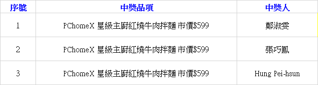 ※後續會由「PChome線上購物行銷活動兌獎服務小組」寄出中獎通知信,請留意e-mail信箱收信