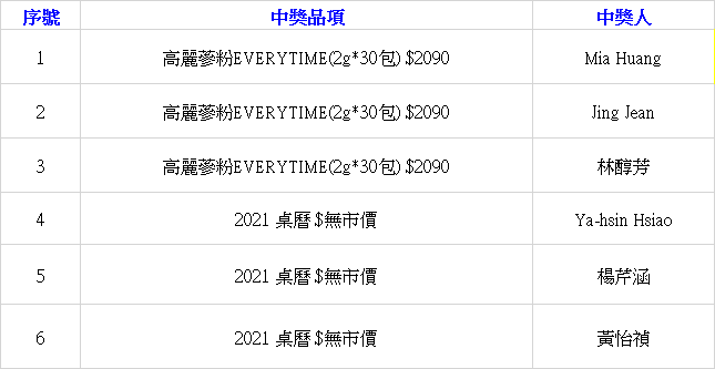 中獎人請於【2020/11/17 (二) 中午12:00前止】主動私訊小編提供以下資料,逾時視同放棄得獎資格;