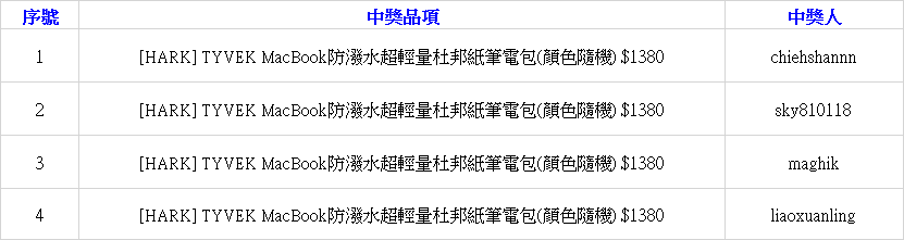 中獎人請於【2020/11/18 (三) 中午12:00前止】主動私訊小編提供以下資料,逾時視同放棄得獎資格;