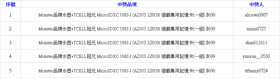 ※提供資料時請確保資料正確,如資料錯誤導致獎品遺失將不再補發