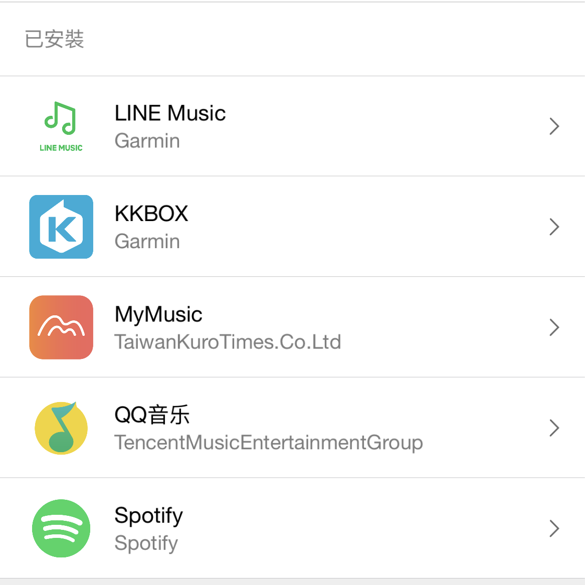 VENU SQ (音樂版)使用音樂功能要先在Wi-Fi網路連線狀況下,「裝置」中「一般」開啟「Wi-Fi網路」,再到「Connect IQ」APP中登入帳號,內建「KKBOX」、「Spotify」、 「LINE Music」和 「MyMusic」等大家常用的音樂平台。歌單下載同步完成,再藍芽連結耳機就可以使用囉!