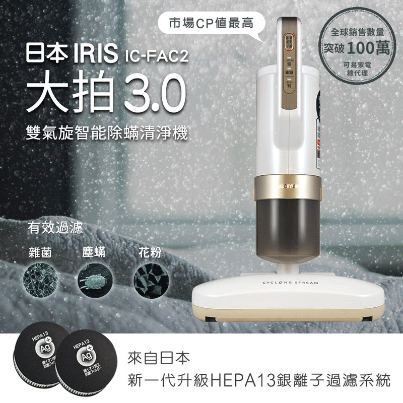 塵蟎、毛髮與皮屑經常會附著在寢具之上,但總不能三天兩頭就洗一次床單吧!【日本IRIS】 雙氣旋除蟎吸塵器,搭載智能感應器,看燈號可以判斷潔淨程度,讓你打掃完超有成就感。配備高規格HEPA13+銀離子濾網,媲美清淨機等級,吸入後再排出的氣流不會造成二次汙染。1.6KG順手好用,輕量操作沒有負擔。