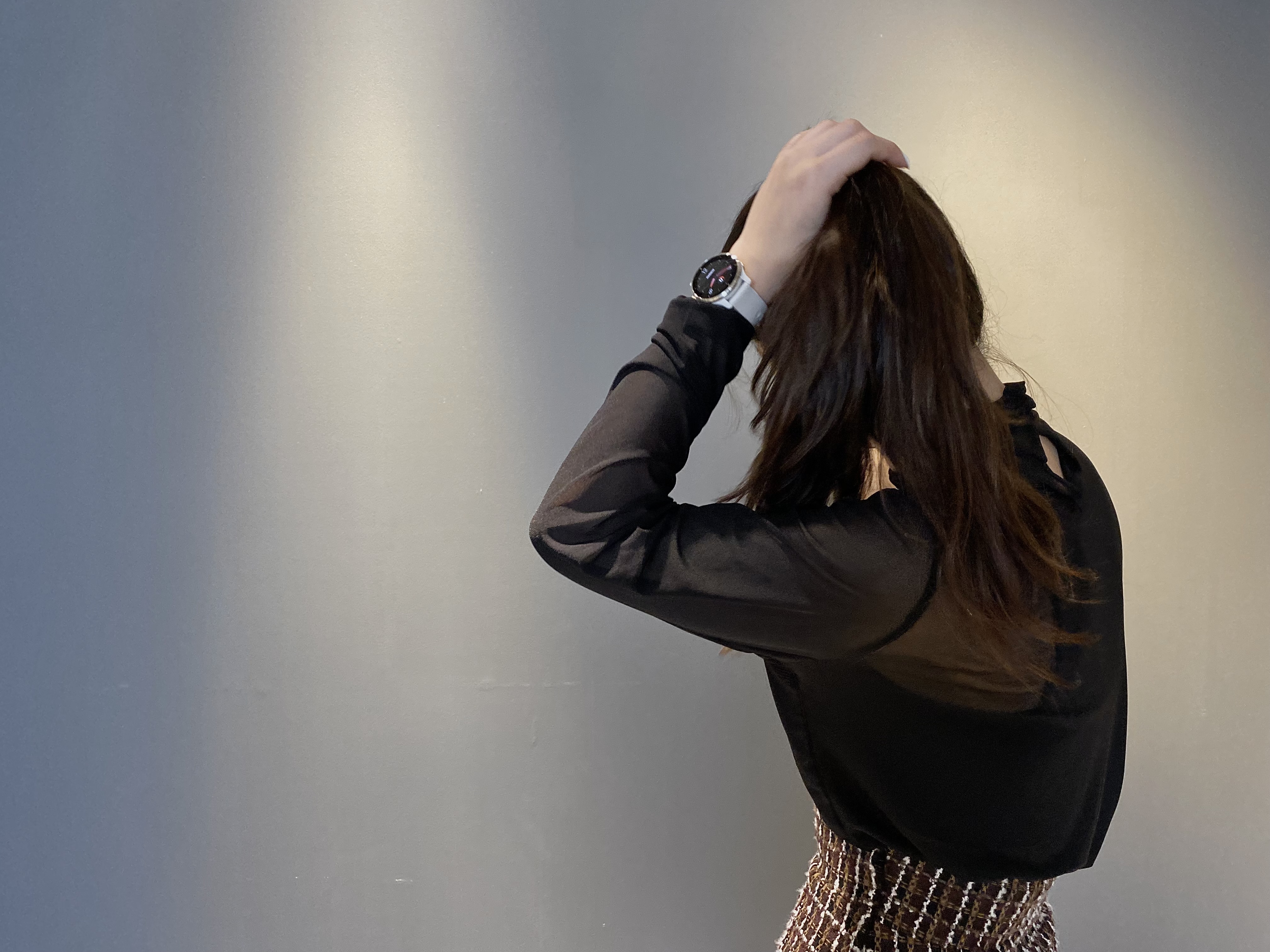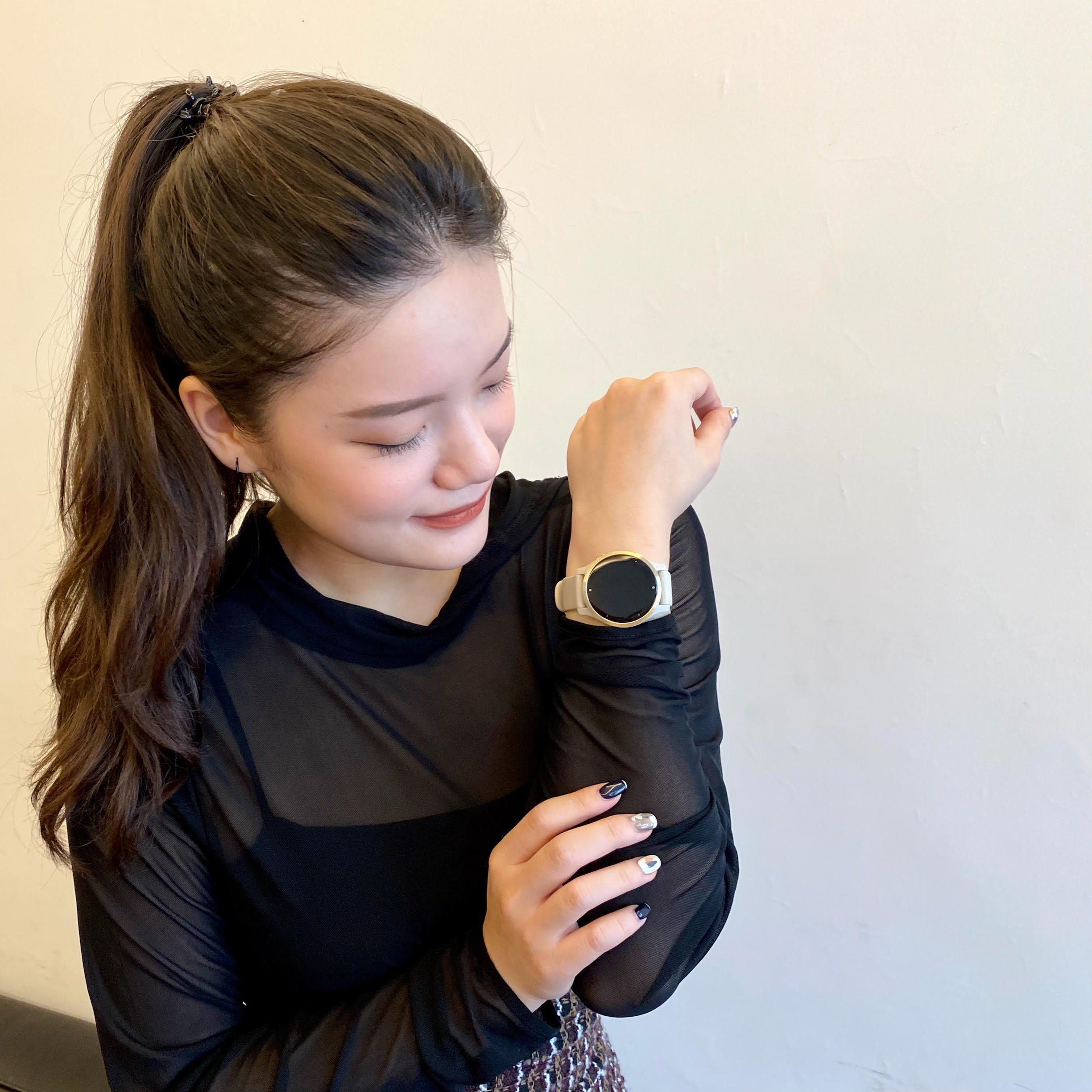 小編這次精挑細選MITCH的透膚光澤上衣,才能襯托出香檳金的大雅質感,上班族女生非常適合選購VENU 2S,在螢幕關閉的時候,手錶就像飾品,大大提升整體造型的高級感,上班時當你的助手,下班後當你的生活教練,貼心指數不輸一個男友!^^