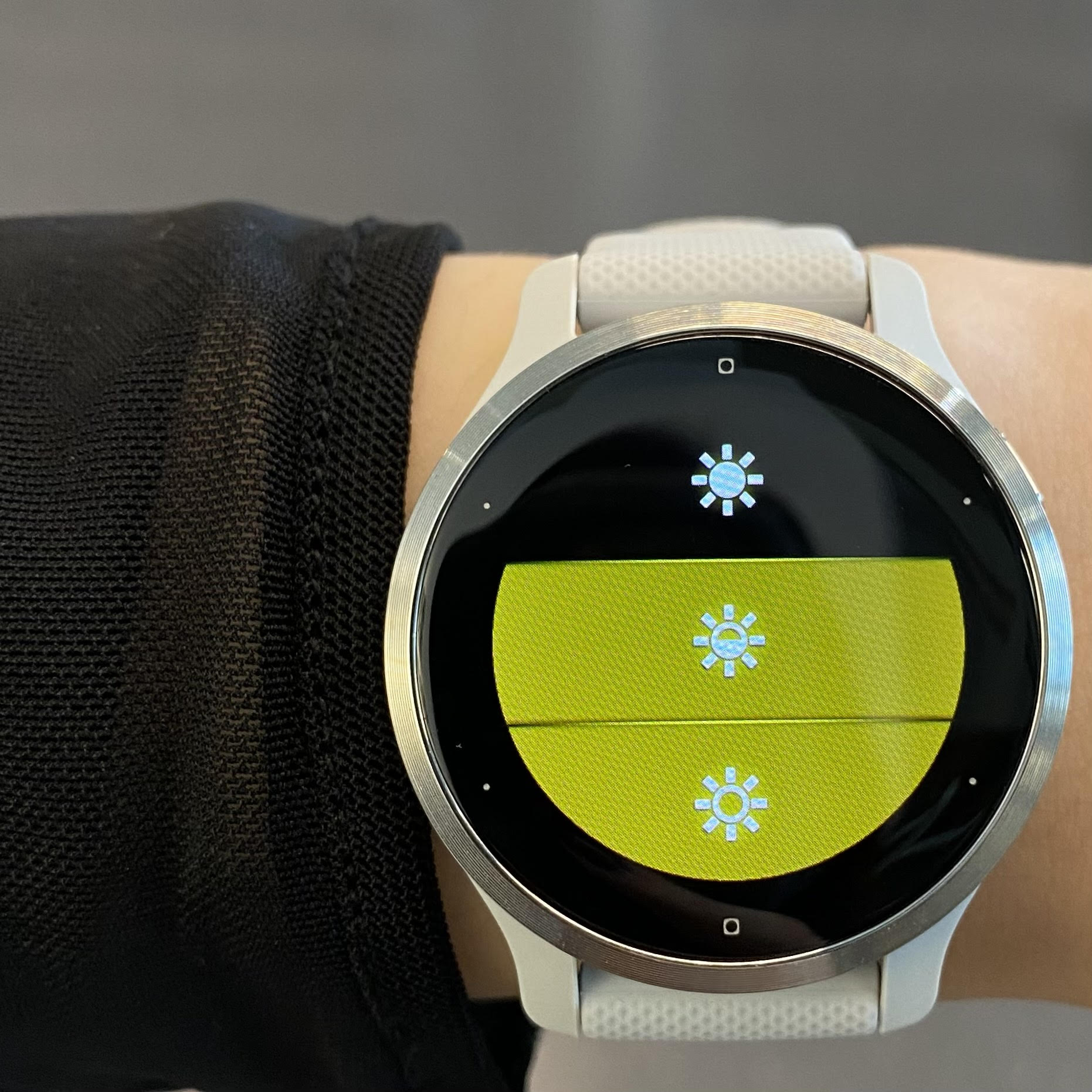 腕錶有3段亮度,夜裡也不用怕被螢幕亮到了!!抬手喚醒螢幕的靈敏程度也可以依照個人習慣調整!客製化省電模式,最長還可使用到 11 天。