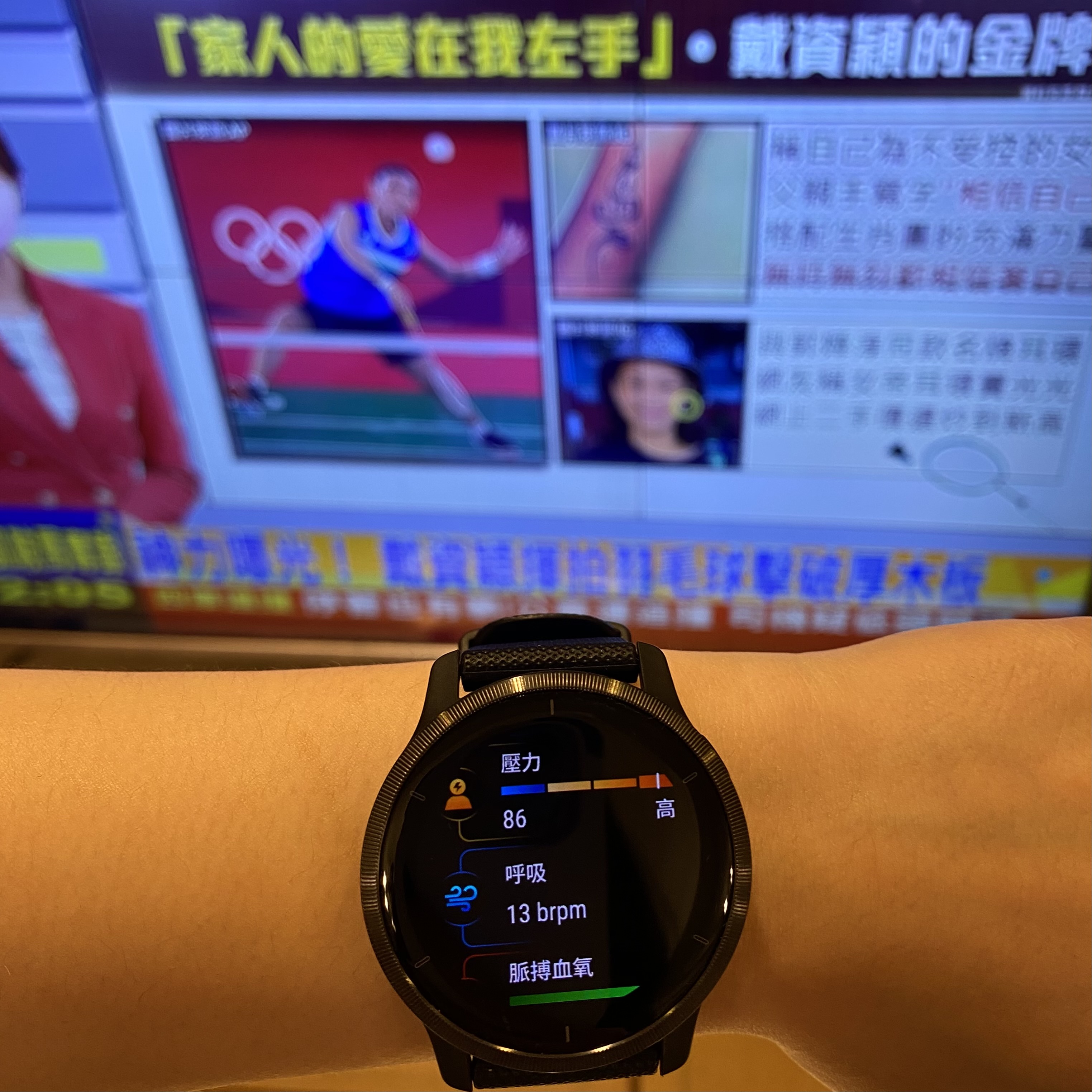 像平常小編壓力指數大約落在36~44左右,周末和家人隨著奧運決賽的實況直播,小編在電視前壓力指數飆達到了86 !