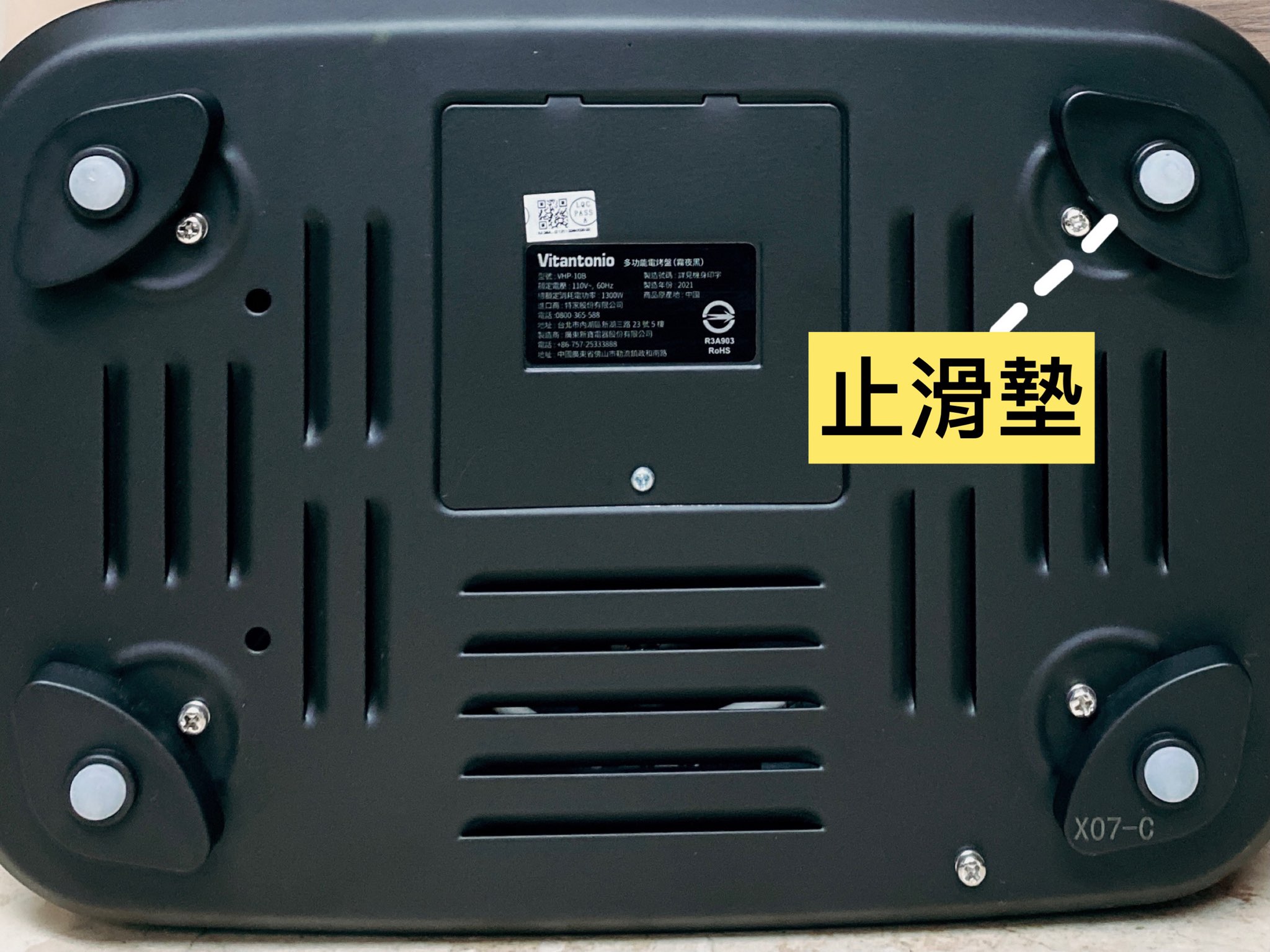主機底座四個角有矽膠墊固定著,料理時不易晃動位移,讓料理過程更加安全。