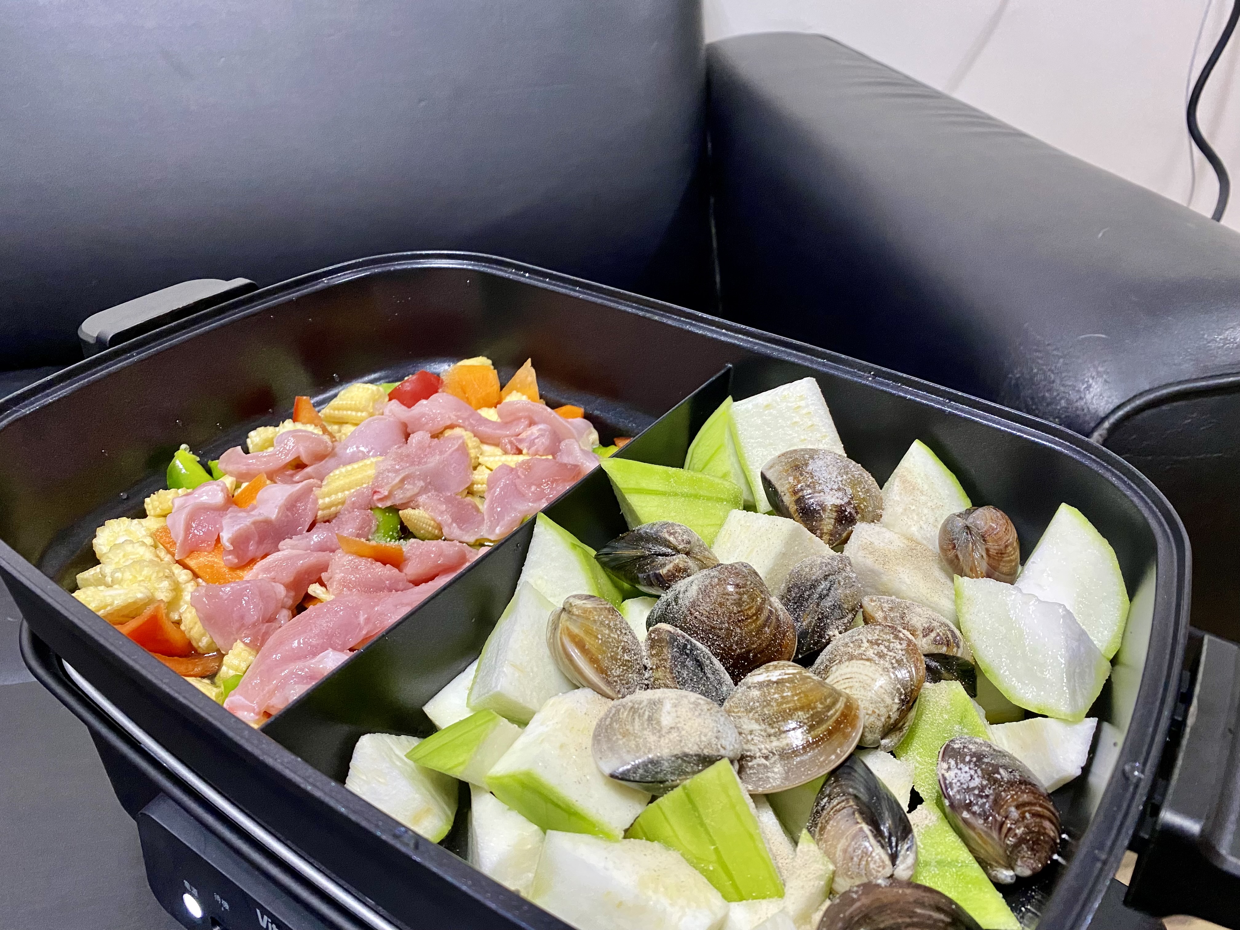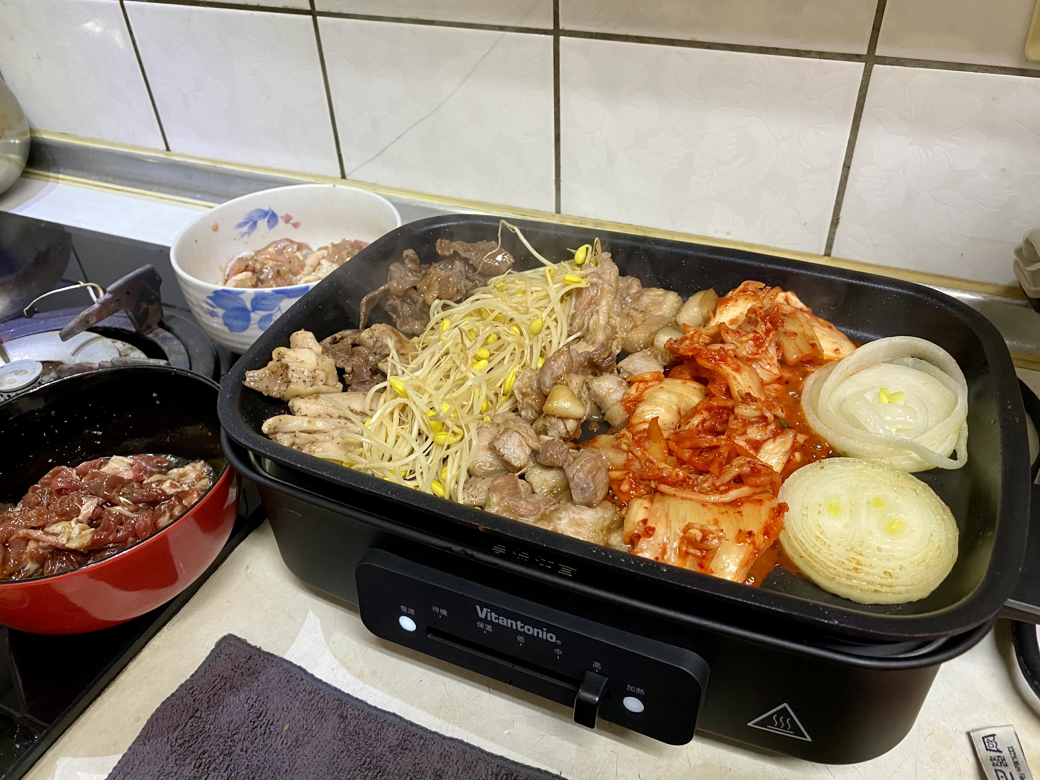 出去吃韓式烤肉時,最常遇到的困擾就是食材太容易因為火量焦掉,如果關火,肉片又會很快的涼掉,使用Vitantonio電烤盤一次解決,即便小編這次買了雞肉、三層肉、牛肉片,三種不同厚度的肉,但並不會因為食材的大小不同造成肉片燒焦,這次自己在家做韓式烤肉大成功!