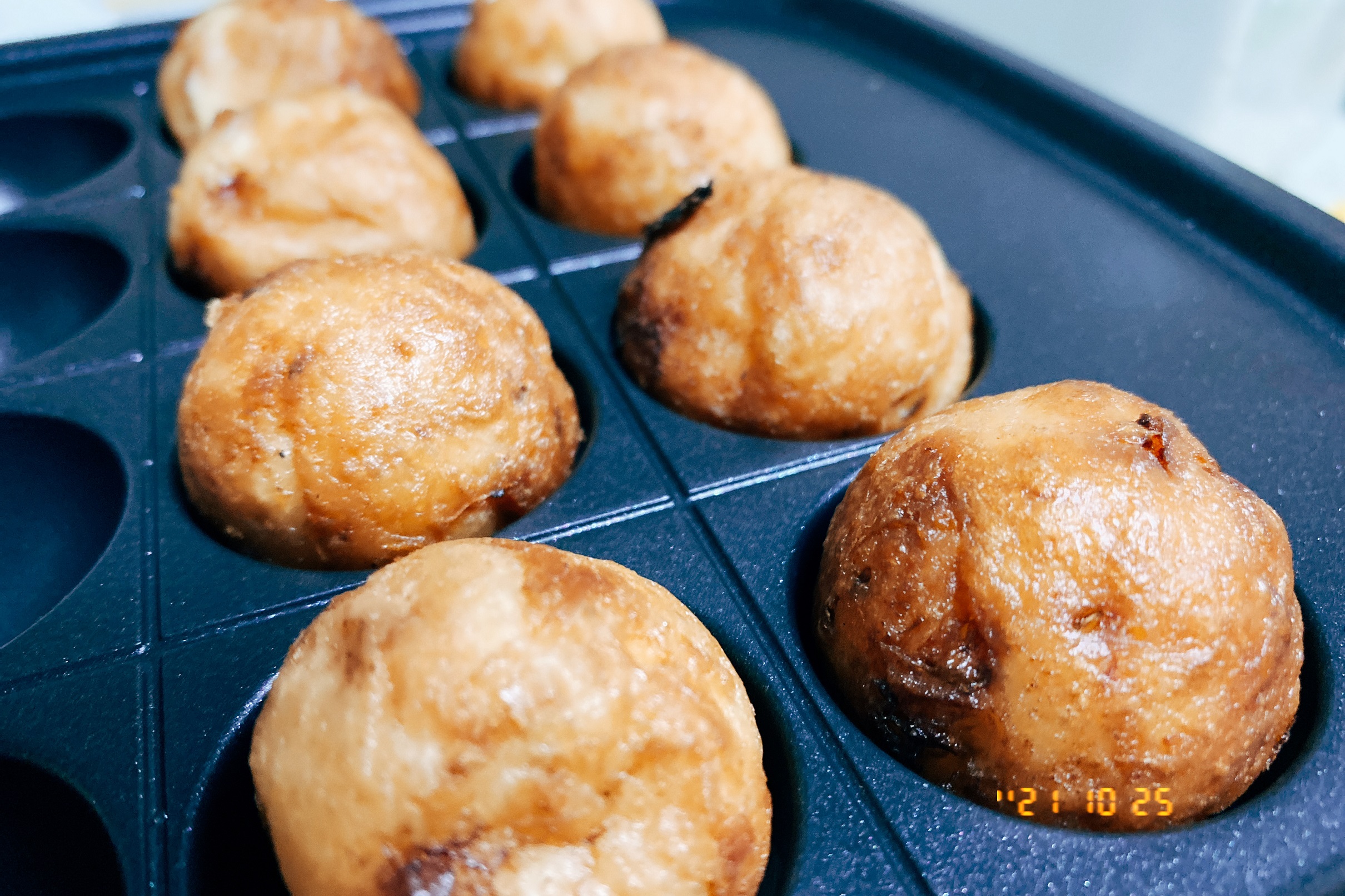 是不是超像外面在賣的章魚燒!!每次想吃章魚燒,買回家後都涼掉了,這次照著食譜調配麵糊餡料,自己動手試做了幾顆,太成功了~~~完全不會燒焦黏鍋,小編決定在防疫期間開始精進自己的廚藝!