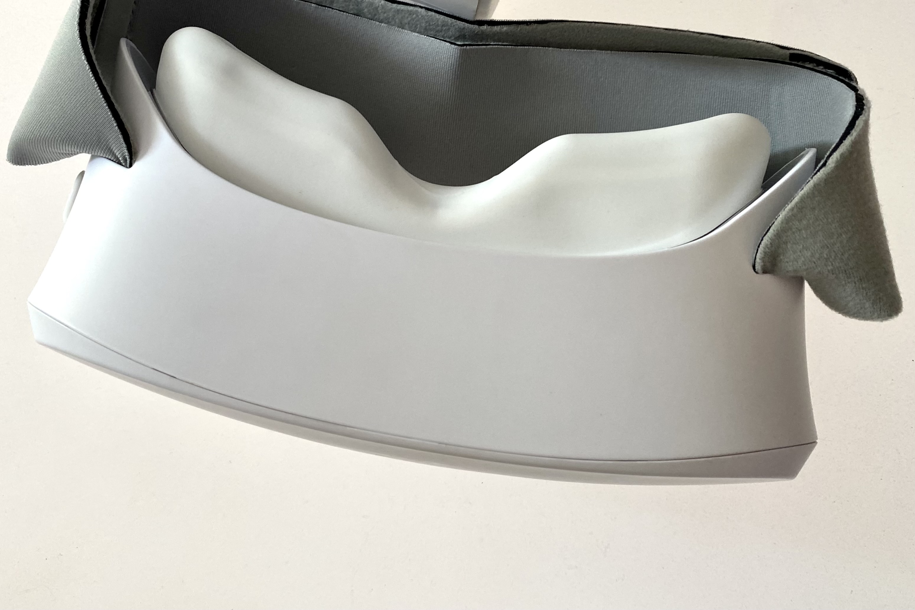 這面是矽膠水袋,裝填水的容器,水袋軟韌可以緊密貼合東方人臉部線條,完美包覆眼睛周圍。