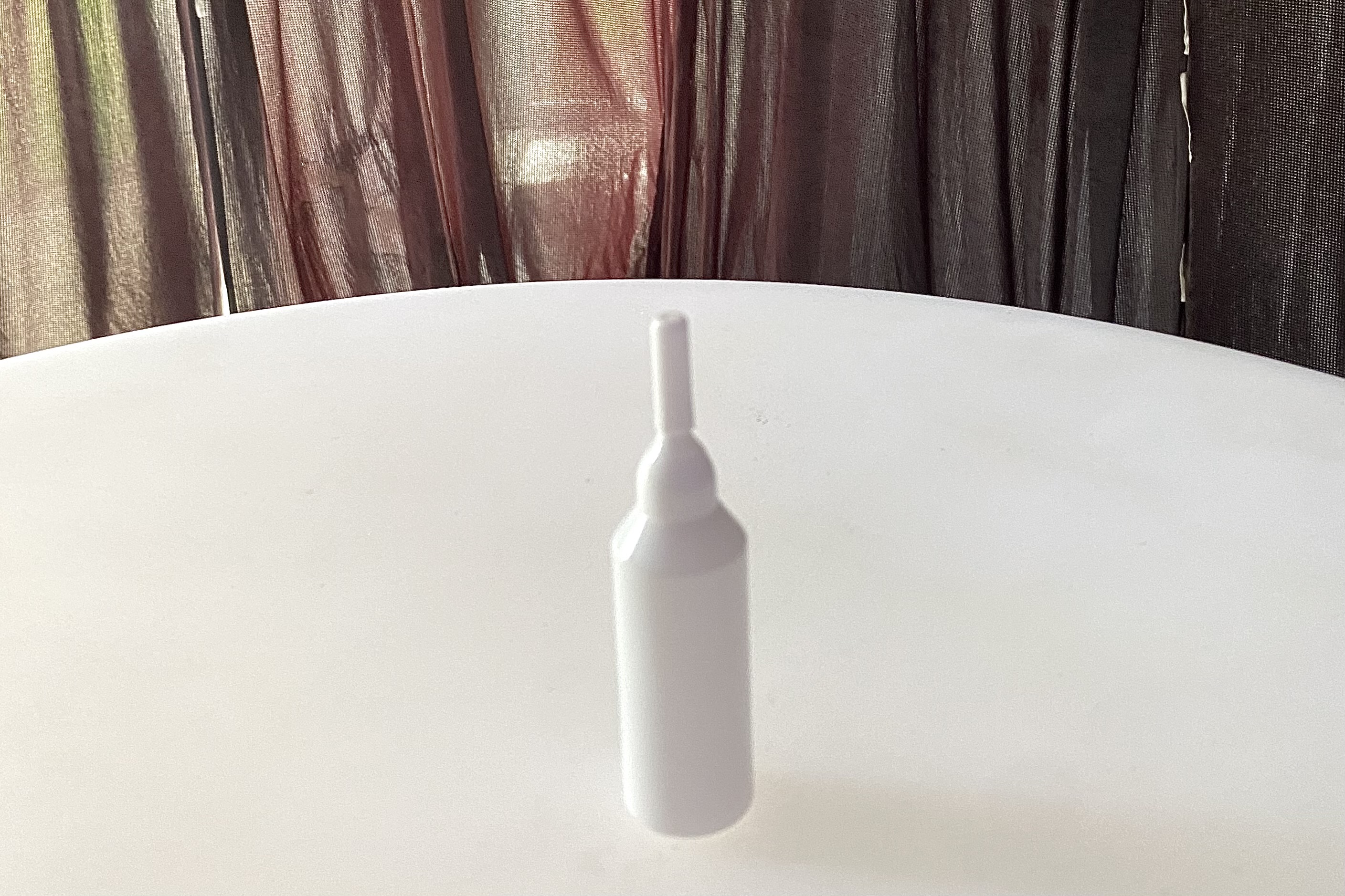 上面是注水口、下面是排氣孔,眼罩使用前需要先將加水瓶加滿,把加水瓶的水加到主機內。