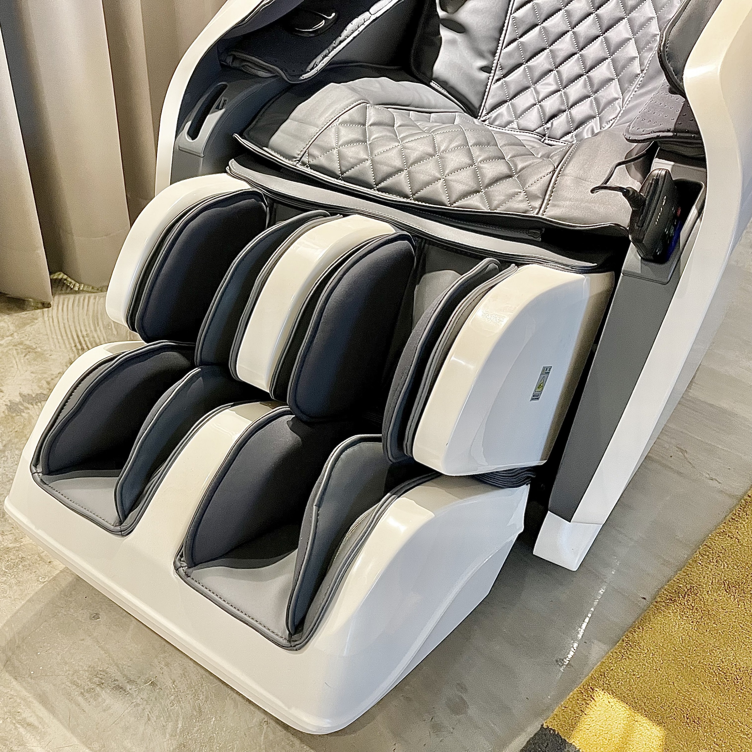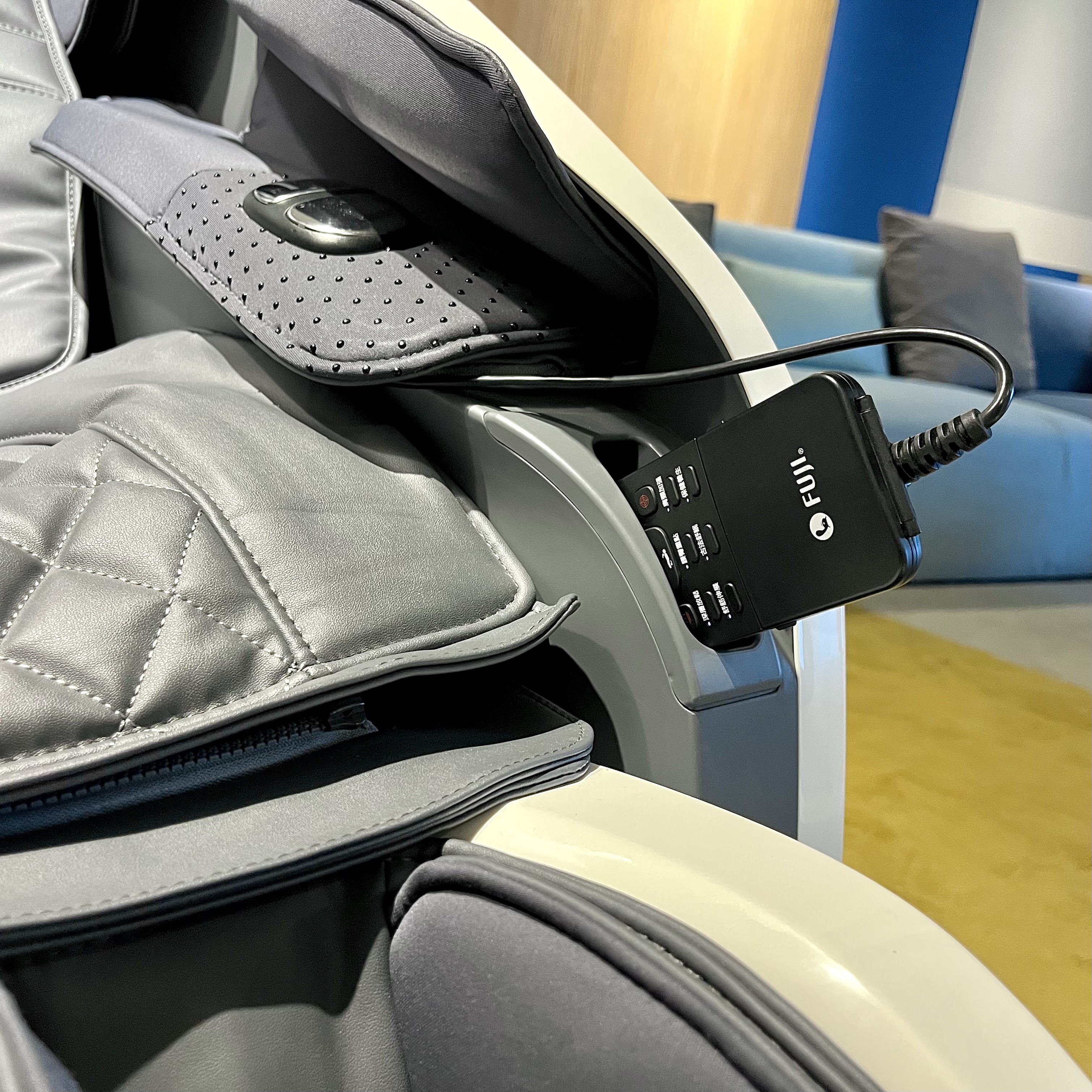 FUJI按摩椅外型簡約低調、方便挪動,還有許多貼心的配置,不但有手機收納槽、USB充電孔、還有立體環繞聲效的藍芽喇叭,而功能上小編最喜歡這台擁有腰部溫熱功能,以及六種自動按摩程序、按摩手法、雙手AI感測、疲勞點及體型檢測,不僅如此,按摩球的移動軌跡會圍繞著頸、背、腰、臀,而氣壓按摩範圍則會包覆著你的肩、手、腿、足、足底採取3D指壓,舒適至極。